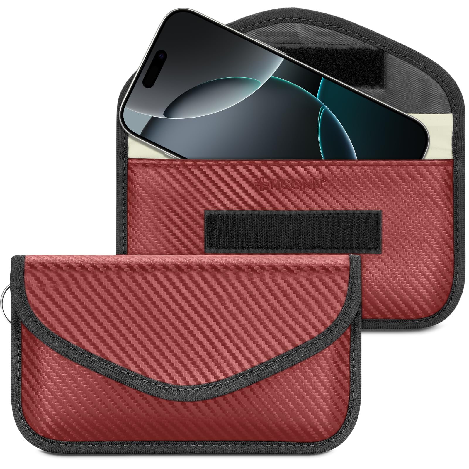 Premium Quality: TICONN Faraday bag features premium carbon fiber-textured material with dual-layer shielding that blocks WiFi, Bluetooth, GPS, RFID, NFC, and car key fob signals while providing water resistance; It is packaged in a gift box, making it a stylish and luxurious gift
