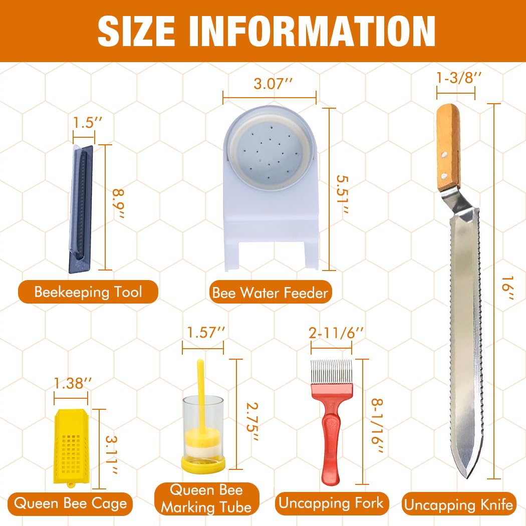 DURABLE & HIGH-QUALITY: Our bee supplies and equipment are made of high-quality stainless steel, durable plastic and solid wood to ensuring long-term use even in demanding conditions