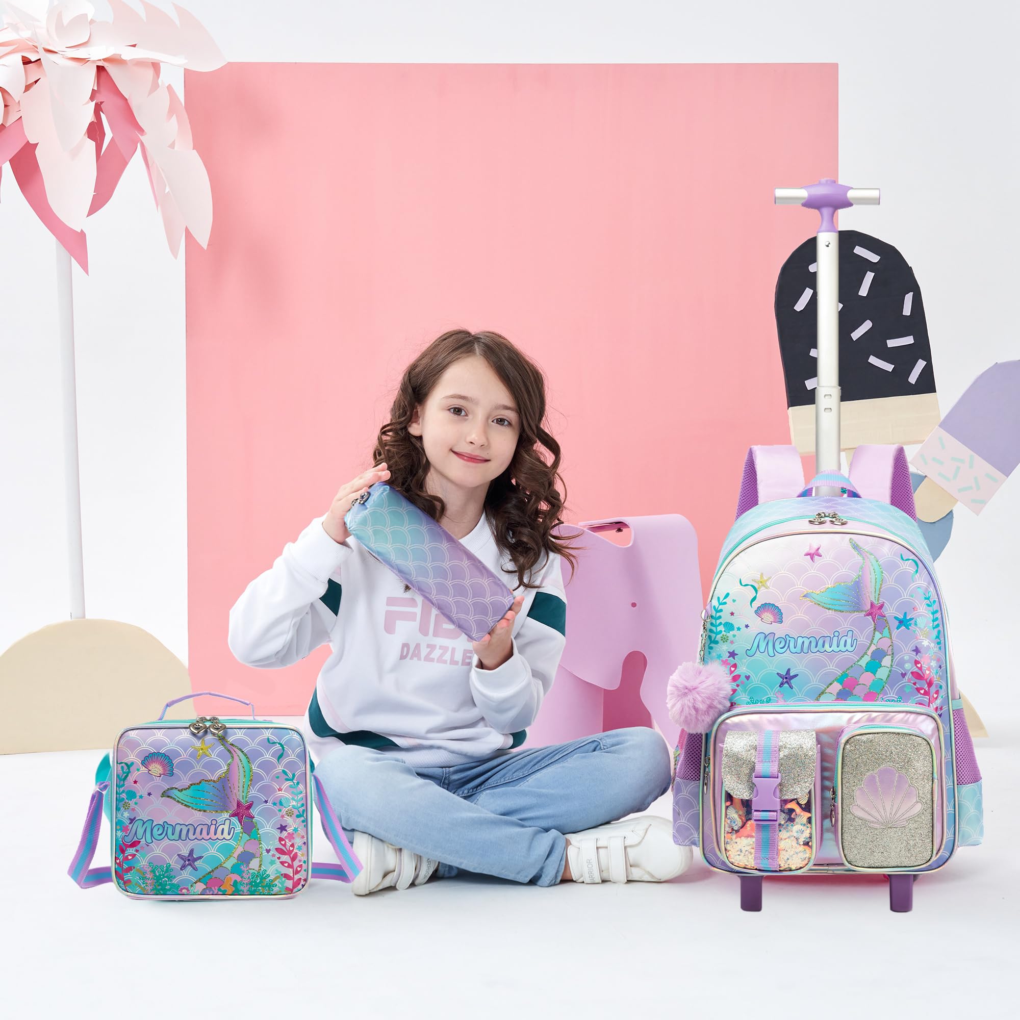 [Girls Wheels Backpacks Wide Application]The lovely rolling school backpack is ideal for various occasions like school, travel, hiking and camping ,tourism.This cute elementary student bookbag is the best choice for back to school, Christmas, New Year.