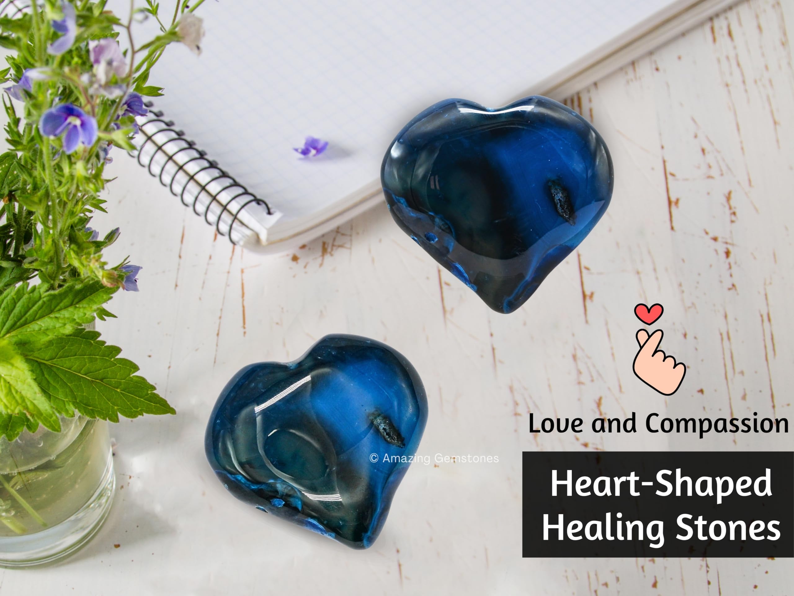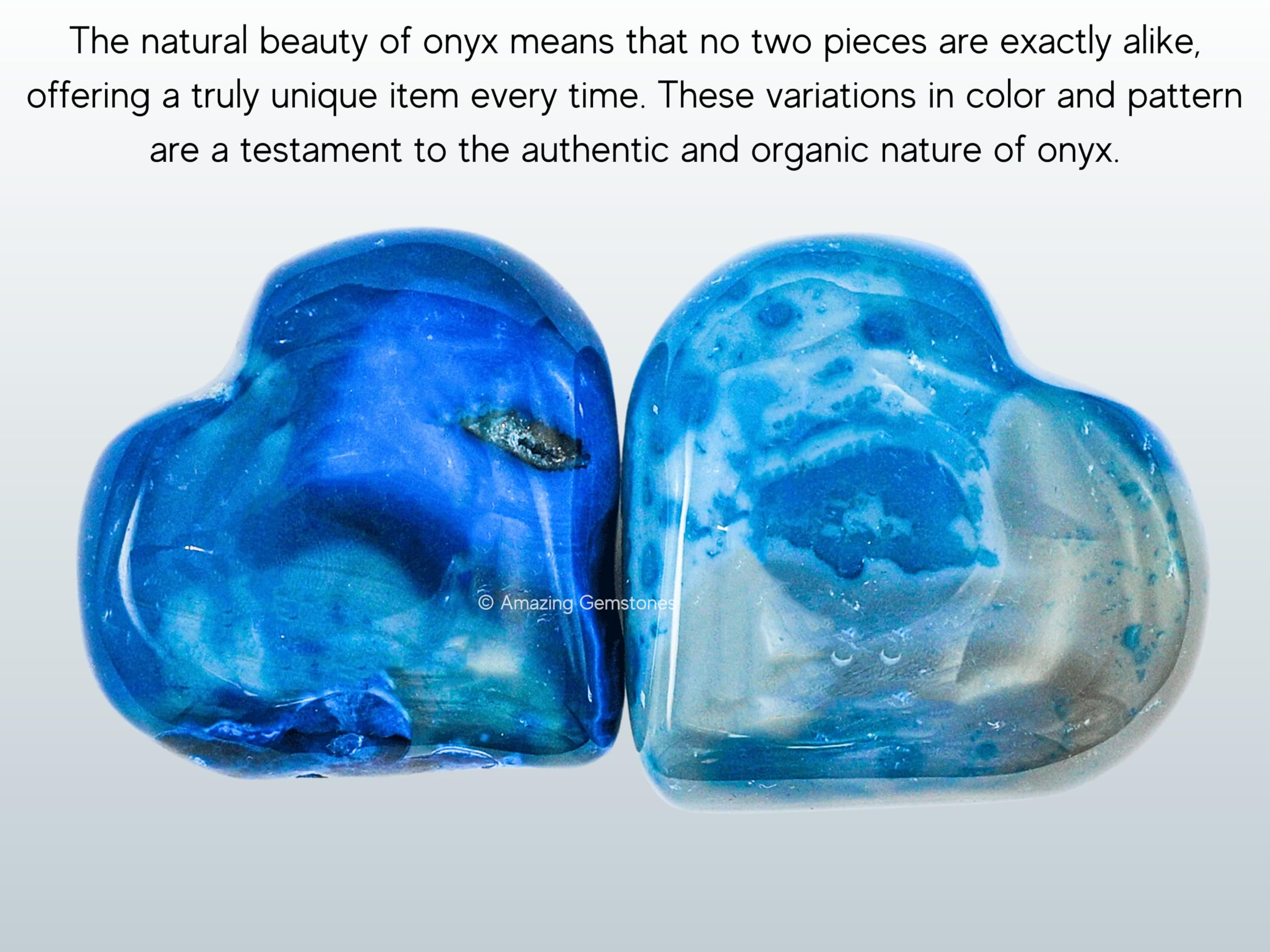 Blue Onyx Agate Crystal Heart Palm Worry Stones are polished heart shaped stones that can be used for Back, Neck, Face and Feet Massage therapy, Chakra Balancing, Reiki Healing, Crystal Grid Meditation and many other esoteric healing practices.