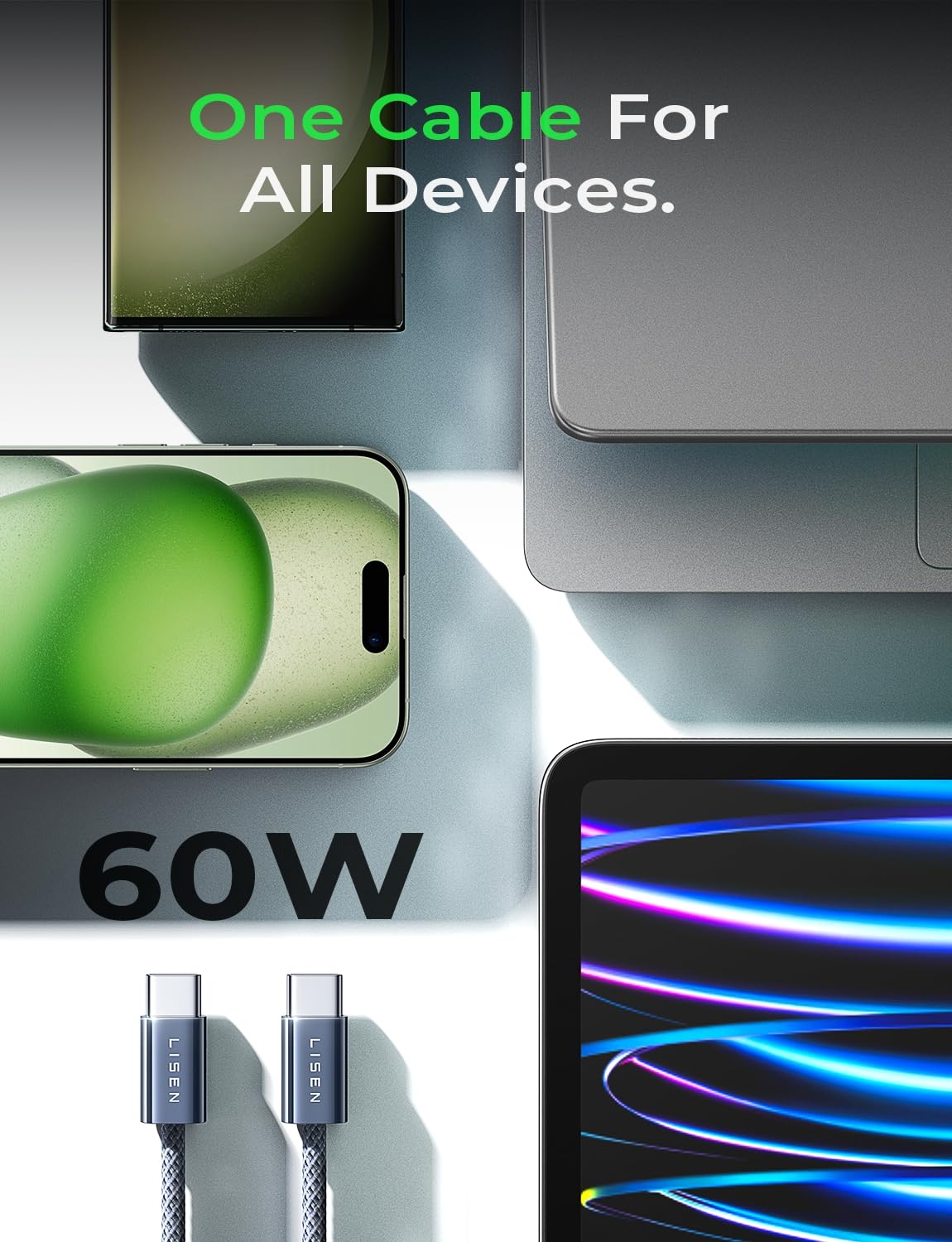 【Right for ALL Your Devices】This is the USB-C to USB-C cable Not the USB-C to USB-A cable, Compatible with virtually all USB-C devices including phones, tablets, and laptops. Such as Samsung Galaxy S25/S24/S23/S22/S21+/S21/S20/ S20+/ S20 Ultra/ Note 10, MacBook Air/Pro 13'', iPad Mini 6, iPad Pro 2021/2020/2018, iPad Air 2020 and more.This product supports bulk purchasing, making it ideal for businesses and large orders.