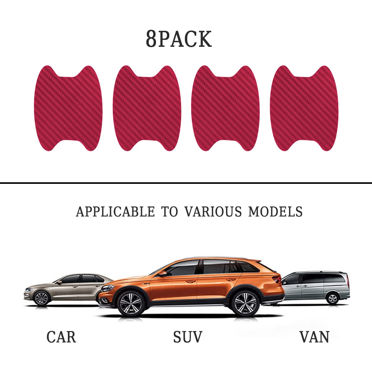 【Carbon Fiber Scratch Protection】: This car door handle sticker is designed with carbon fiber texture, which looks mordern and stylish, this sticker is a great decoration for your vehicle, it add some fashion and personality and makes your vehicle stand out and eye catching. This handle sticker has a smooth edge so it will not do harm to your vehicle.