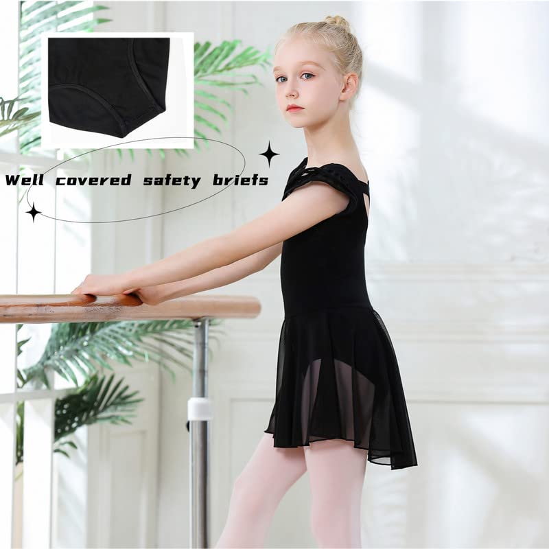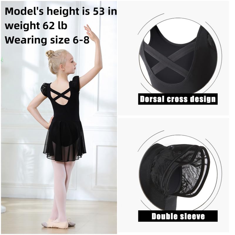 Cute: Leotards for girls ballet with the detail of flutter sleeve and the criss-cross back makes kids looks so cute and sweet in this. The vibrant color and skirt twirls makes her feel like a princess. There are other pretty colors to purchasing.
