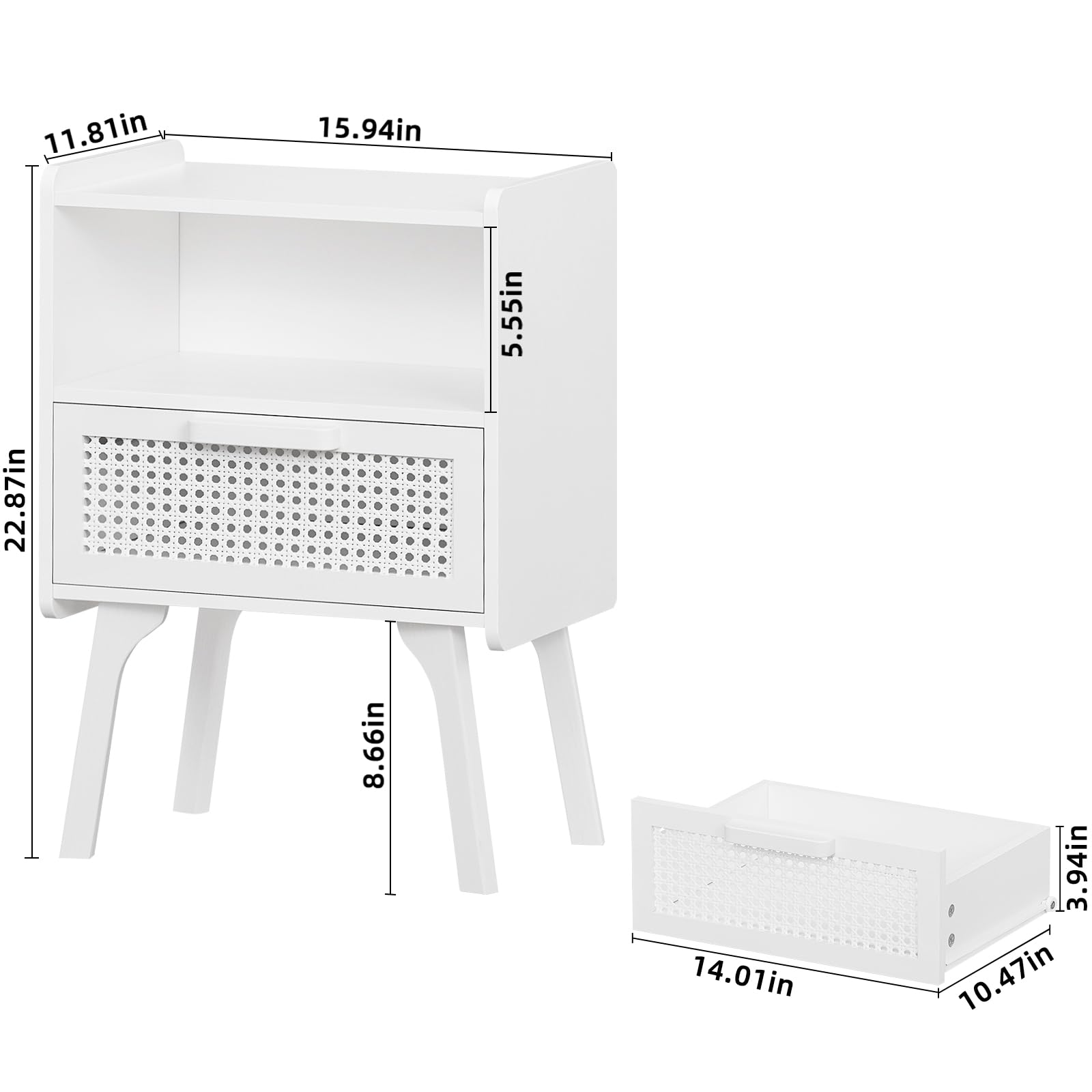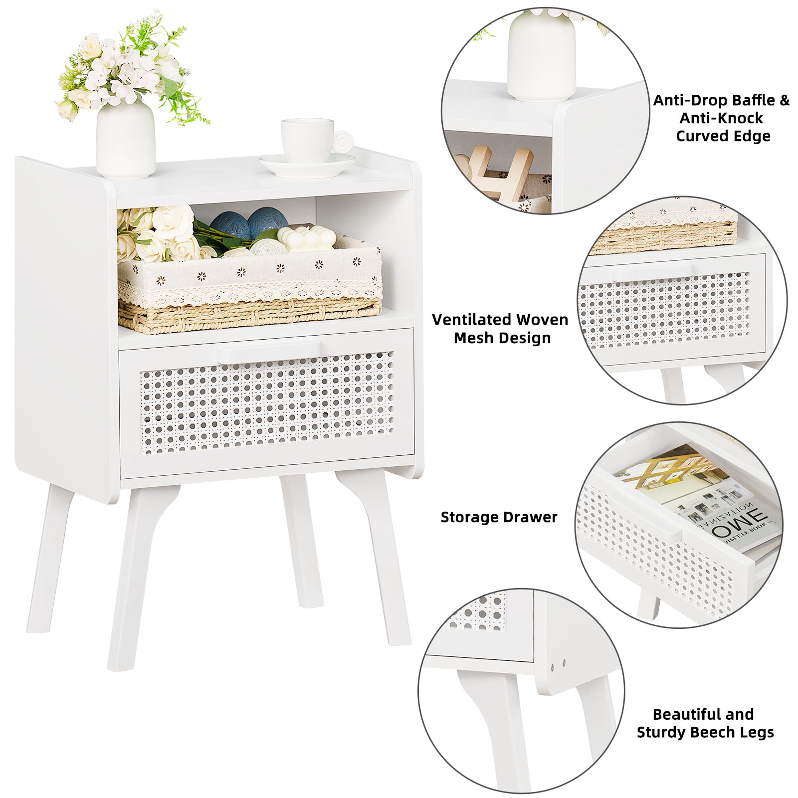 [White Rattan Nightstand] The wood texture rattan night stand combines modern style and boho element. It is suitable for many styles of home decor and can help you transform your living space. The cane decorated drawer is beautiful and practical and the rattan mesh design keeps the air flowing in addition to the storage. Rattan furniture brings a perfect visual effect and adds charm to your home.