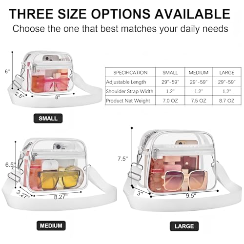 Suitable Capacity: This messenger bag has a main compartment can hold a small wallet, phone, lipstick, tissues, and sunglasses, while the front pocket can hold keys, cash, cards, and tickets, making our clear bag an essential for your concert outfit.