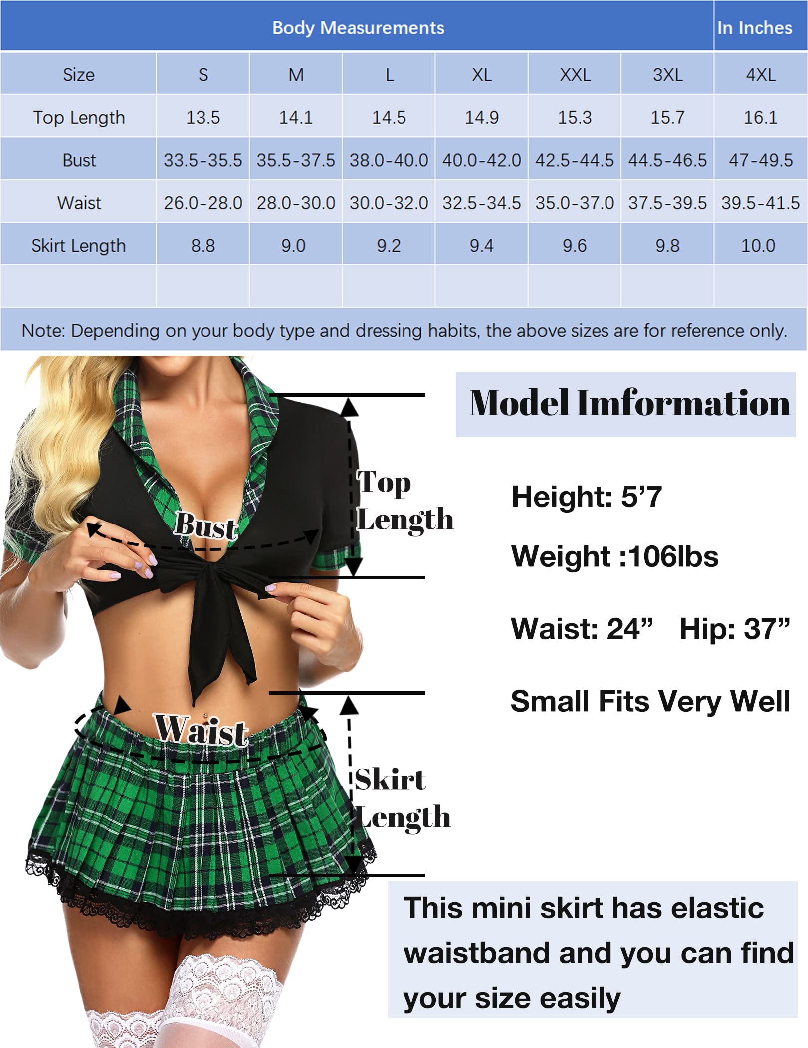 Package Content: 1 x lingerie set with crop top and pleated skirt.Please refer to our Size Chart for selection.