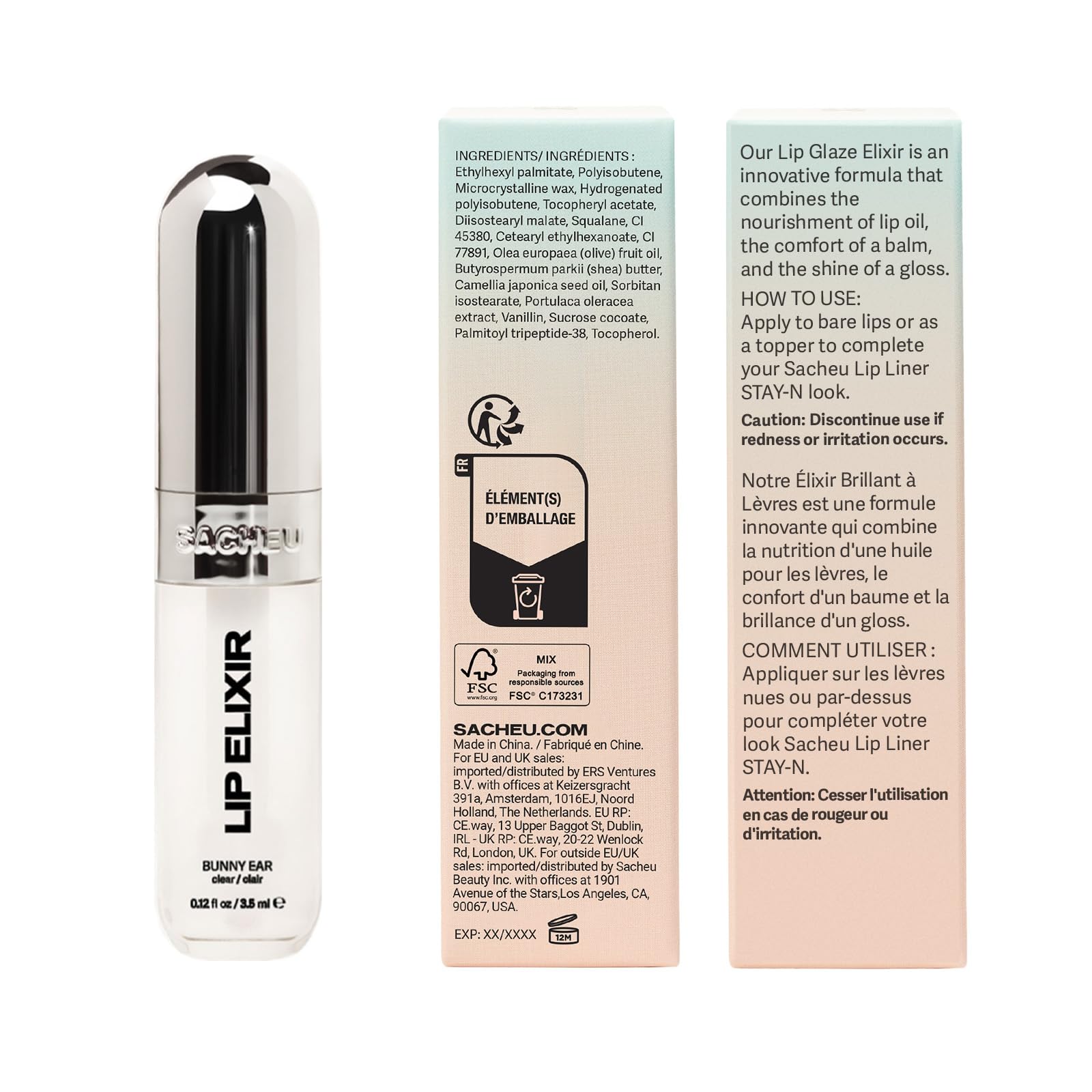 Versatile Lip Gloss: A long lasting lip gloss that combines the nourishment of lip oil, the comfort of a balm, and the shine of a gloss in one! This high shine lip gloss can be worn alone, providing a glossy boost to your natural lip color - or best partnered with our Sacheu Lip Liner Stay-N for a more dramatic effect!