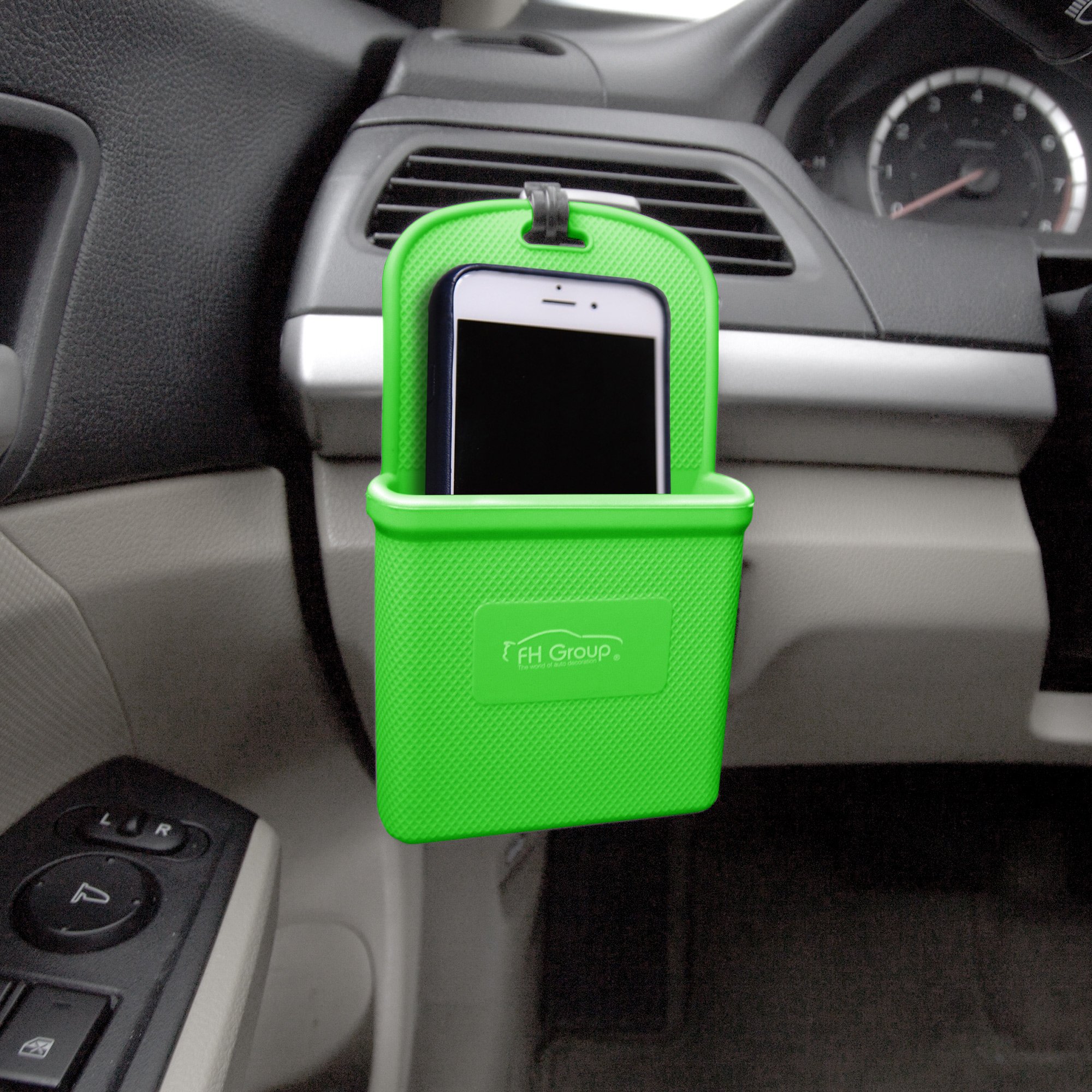 FH Group's Universal Fit Cell Phone holder fits virtually any phone and easily clips onto your vehicles air vents. Its damage free material is safe for automobile plastics and can withstand extreme heat or cold temperatures. Our vent mounted phone holder even fits larger phones such as the iPhone 7 plus and iPhone 6 plus along with Samsung galaxy phones. This vent mounted phone holder lets you keep your phone within arm's reach and allows easy access to whatever you need. Also works great as a change holder to for parking meters and toll booths.