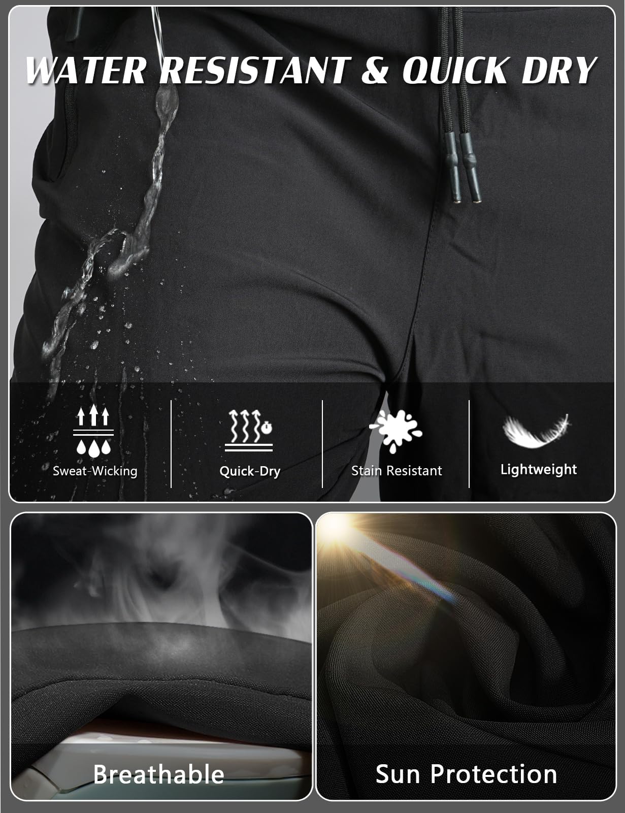 Water Resistant & Quick dry -- Durable water repellent (DWR) finish on fabric to shed light rain and stains.Outdoor sports,fast drying keeps you cool and dry.
