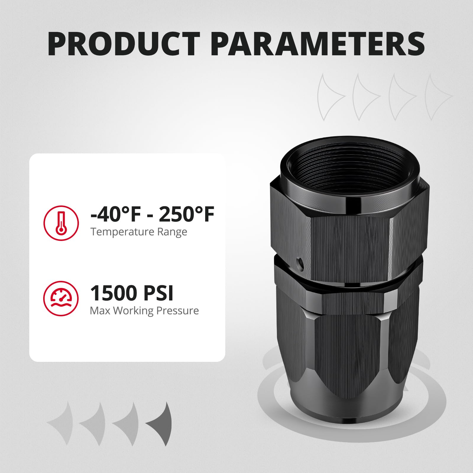 [Parameter] Max Working Pressure: 1500PSI. Working Temperature Range: -40℉ to 248℉ (-40℃ to 120℃).