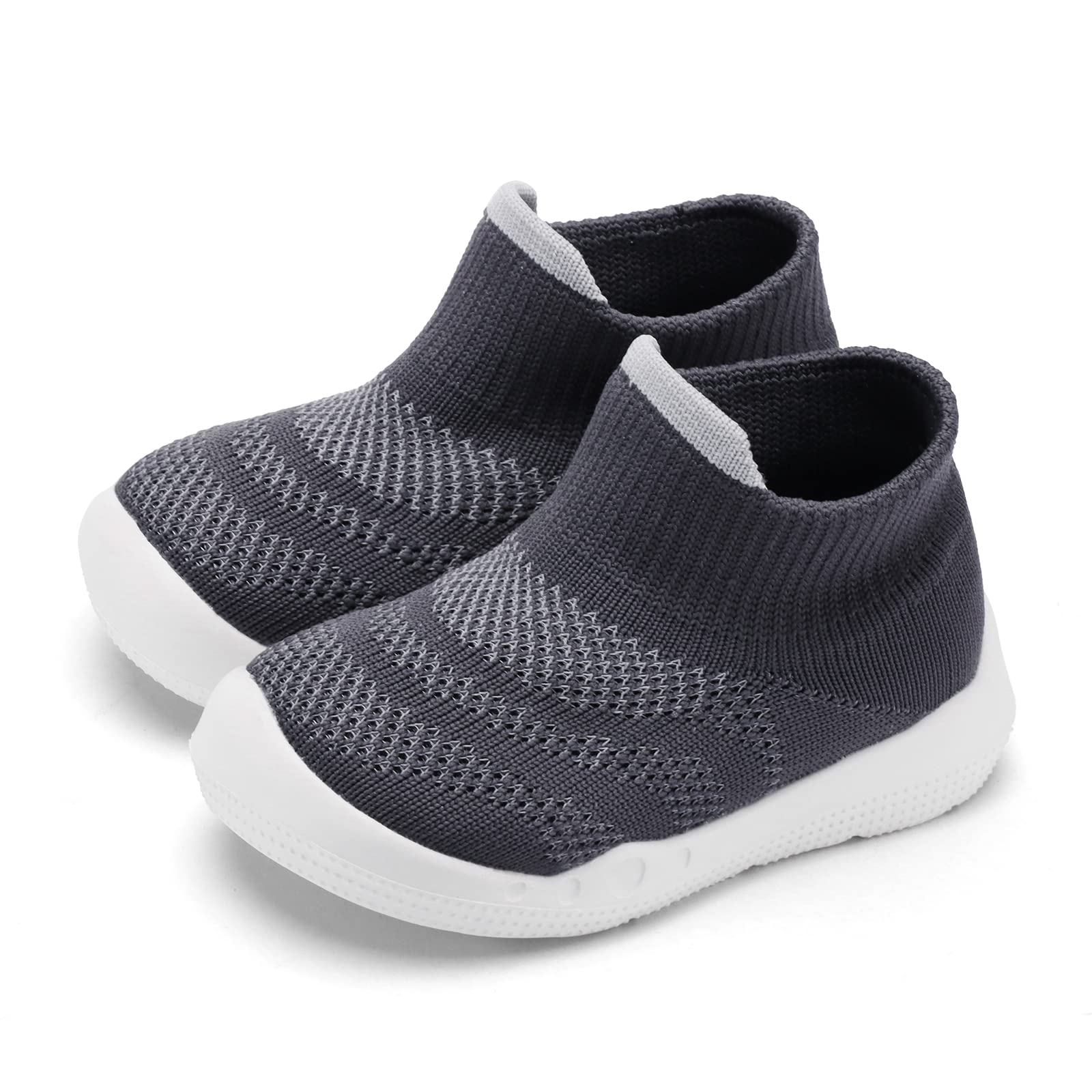 Easy Put On:Baby walking shoes The one-piece design with stretchy knit collar only takes seconds to for you to slip them on, so babies can jump right into playtime. Toddler slip on shoes let them play in comfort while enjoying their time.