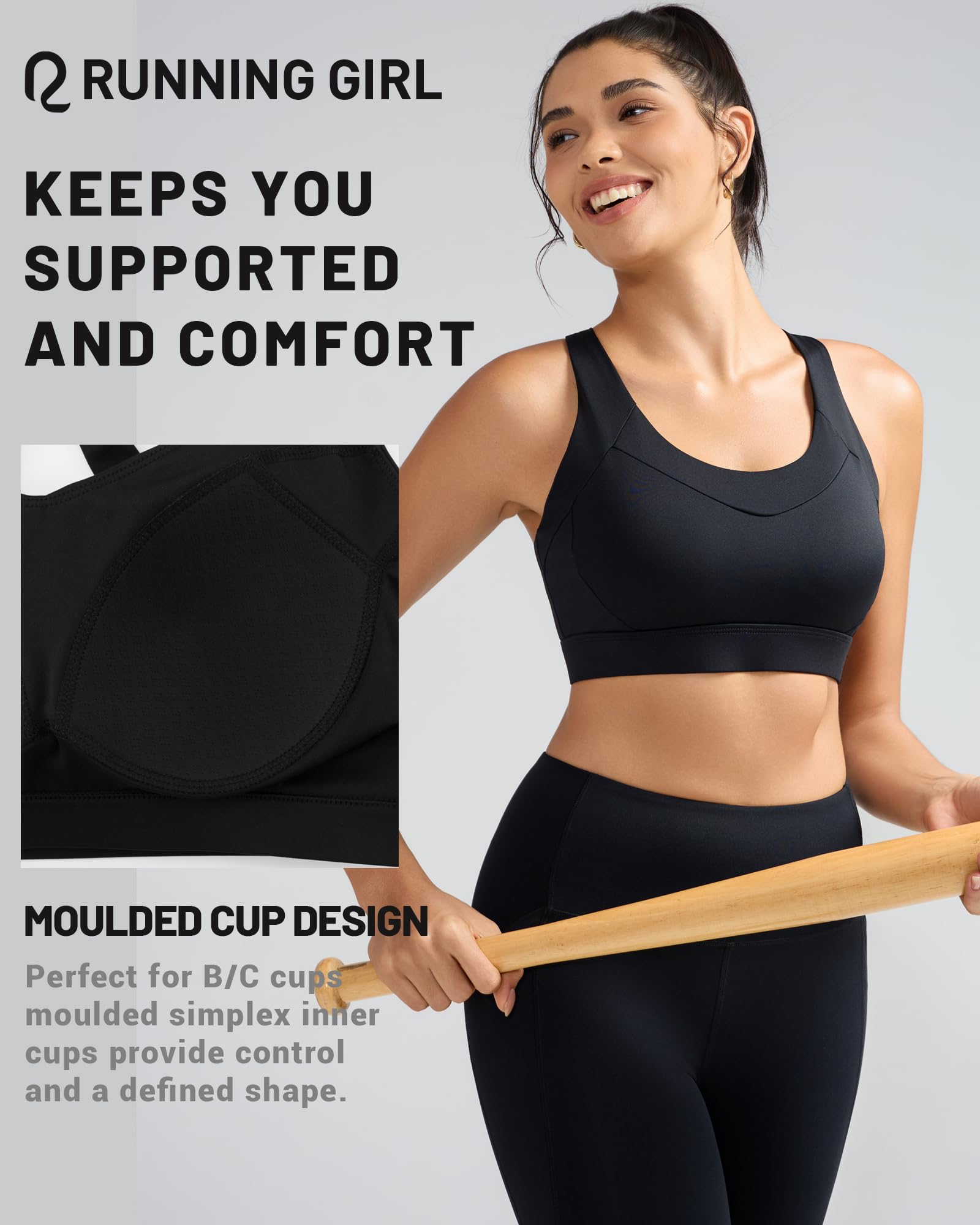 【FLATTERING LOCKDOWN SUPPORT】Sculpted Support,Effortless Comfort.Get no-bounce confidence for medium-impact workouts! Our sculpting sports bras with moulded cup give you customizable coverage and a snatched silhouette.Criss-cross straps aren’t just cute -they lock girls in place during spin class, HIIT, or trail runs. Perfect for B/C Cups!The RUNNING GIRL Revolution Sports Bra is your go-to for medium to high support with a flattering, feminine touch.
