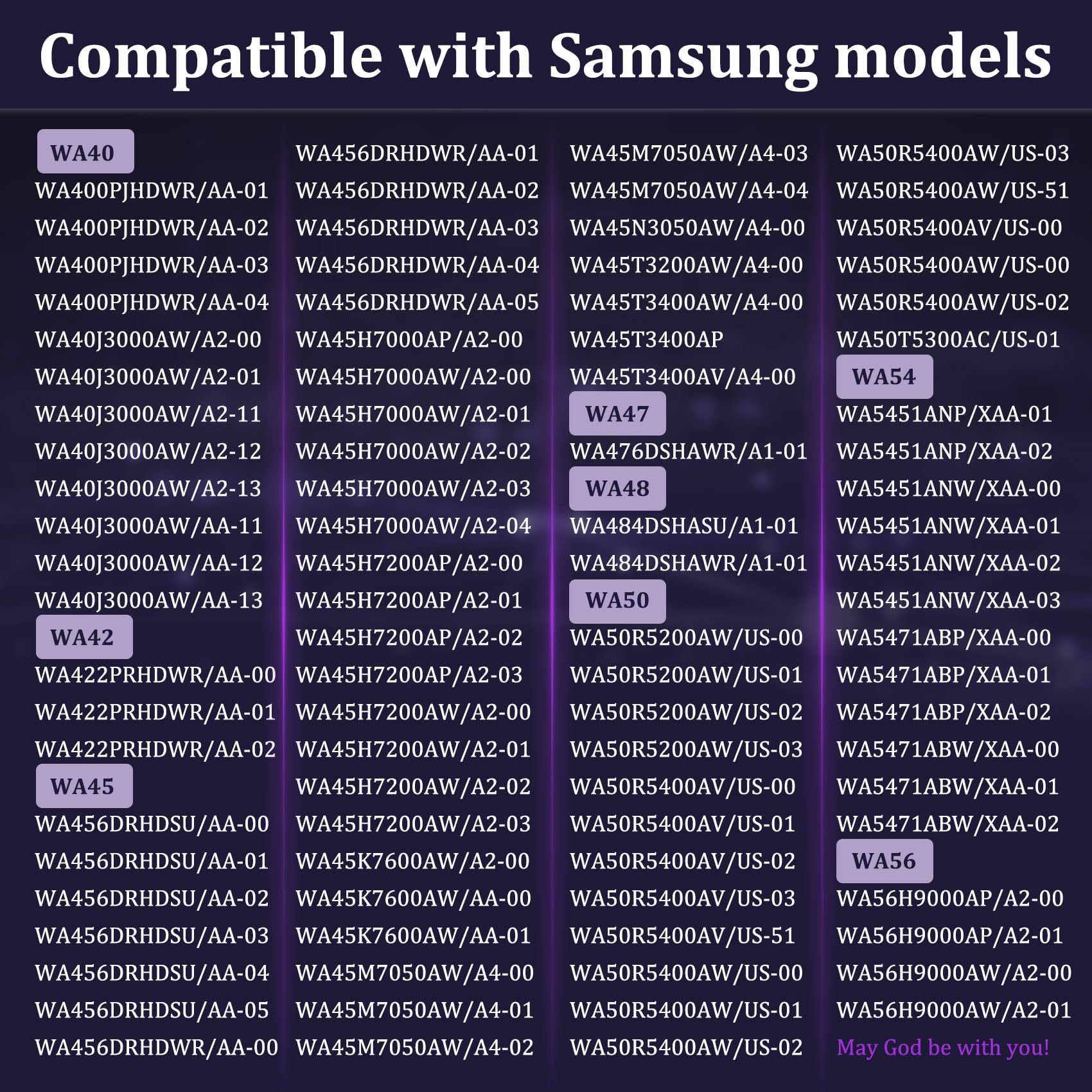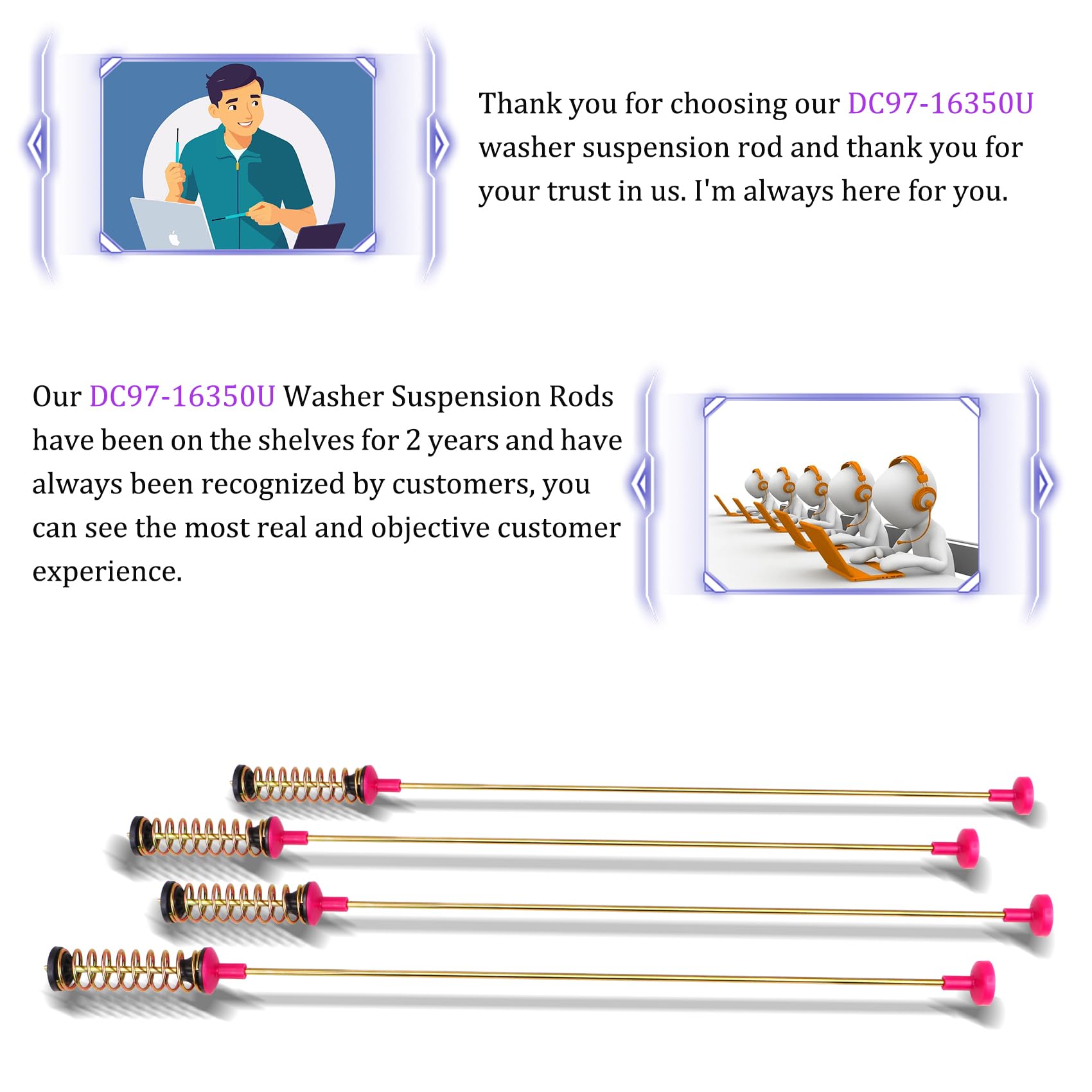 【Fit for many models】 This DC97-16350U washer suspension rods for samsung fit for WA50R5200AW/US, WA50R5400AV/US, WA45T3200AW/A4, WA45N3050AW/A4, WA45H7000AW/A2, WA45T3400AW/A4, WA50T5300AC/US, WA45M7050AW/A4, WA400PJHDWR/AA etc. For more fit models, please see picture 7. Please confirm that it is compatible with your machine, if you can not confirm, please feel free to tell me, I will help you confirm it