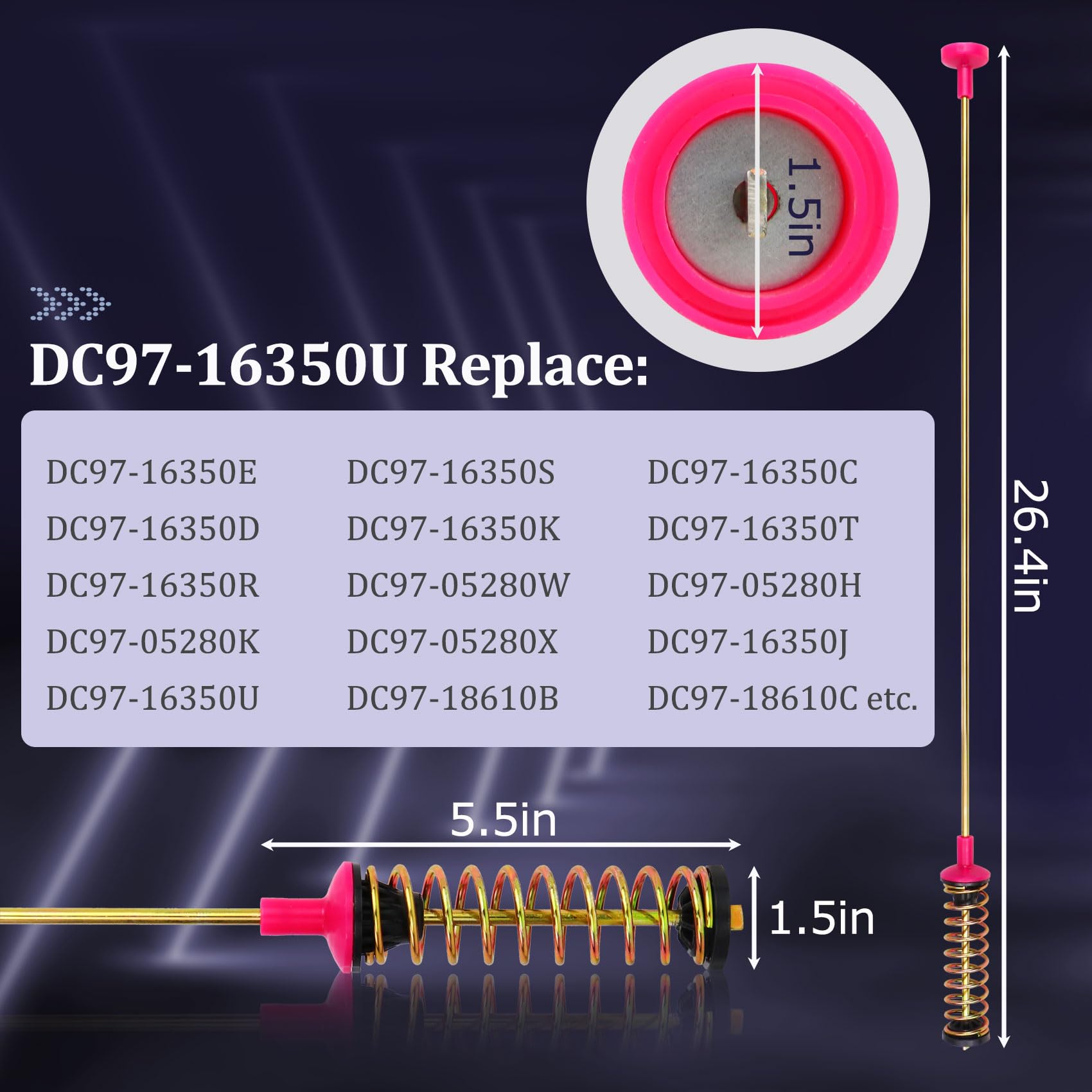 【Replaceable suspension rod】 The DC97-16350U suspension rods for samsung can be replaced for most samsung washer suspension rods. DC97-05280W, DC97-16350S, DC97-16350T, DC97-16350C, DC97-16350D, DC97-16350E, DC97-05280H, DC97-05280K, DC97-05280X, DC97-16350J, DC97-16350K, DC97-16350U, DC97-18610B, DC97-18610C, AP5623264, AP5669739, AP6884450, B01AQHP6N2, EAP12720841, EAP4276369, PS12720841, PS4221572, PS4276369, 3282689 etc.