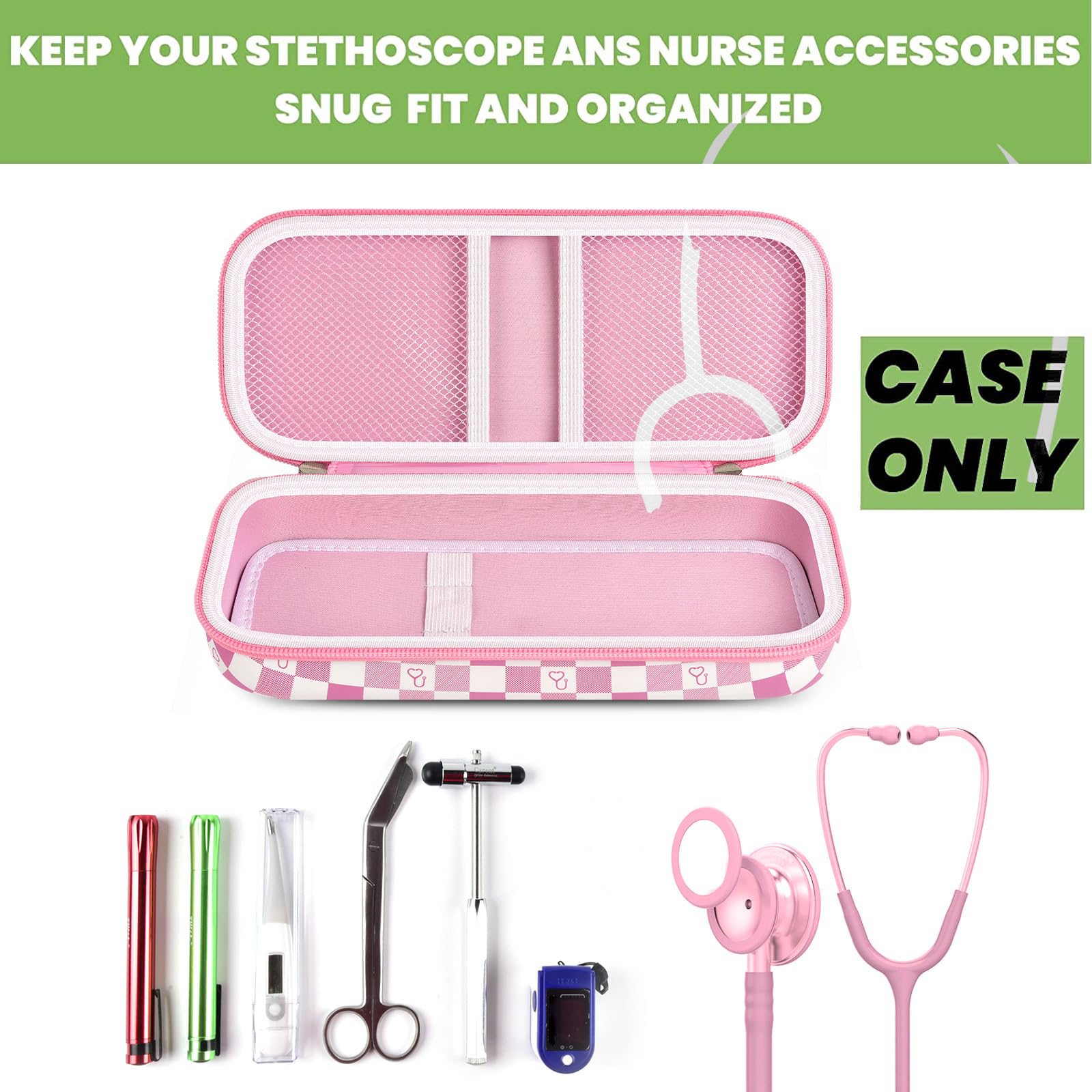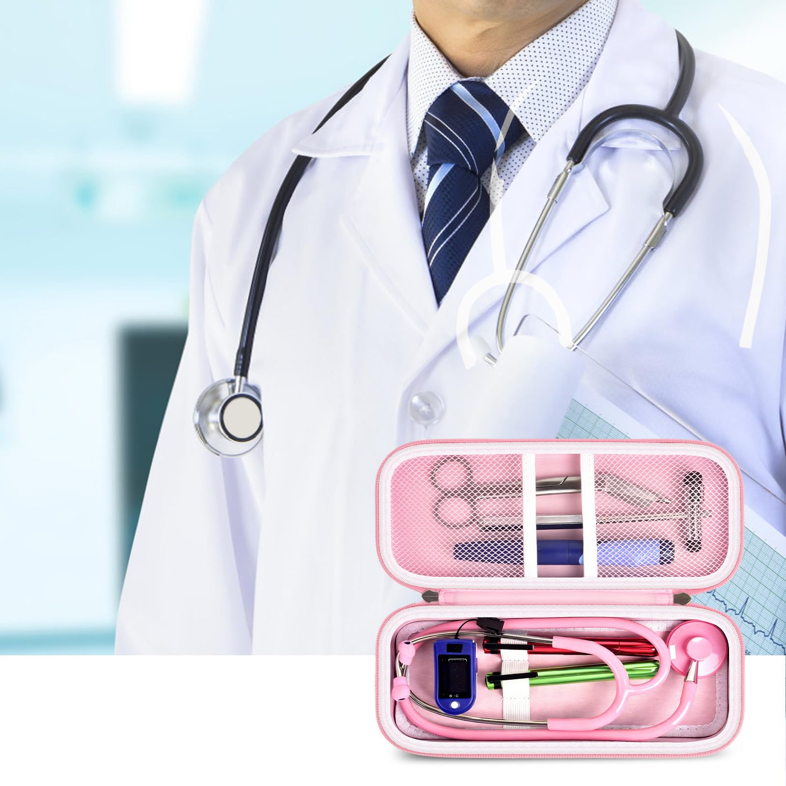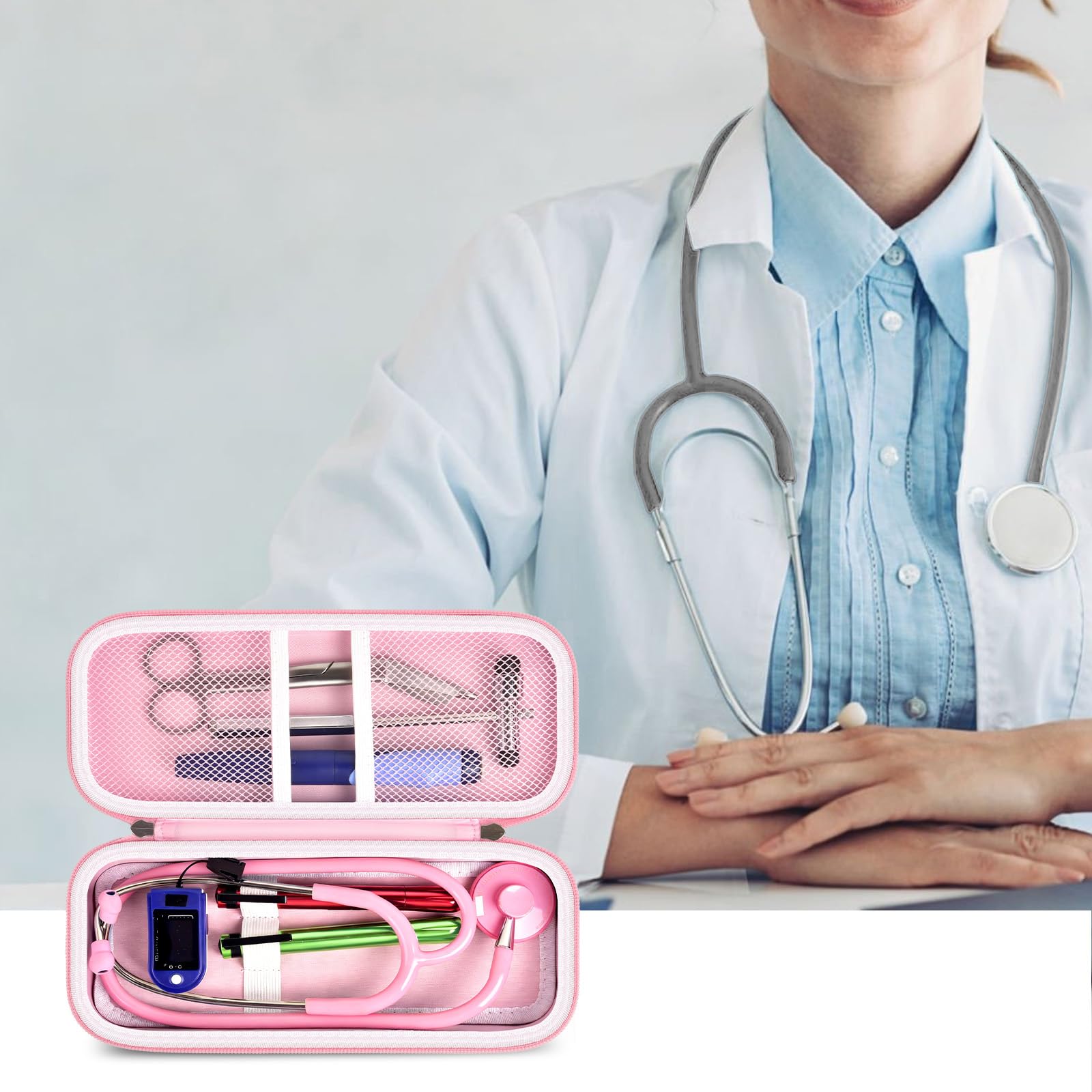 Stethoscope Case of Comprehensive Protection: This case is made of the hard EVA materials, the anti-static, shockproof layer and fluffy fabric inner layer fully padded and effectively absorb impacts, compact fully protect the stethoscope, neurological reflex hammer, medical thermometer, pulse oximeters, and other Littman stethoscope accessories. Prevent shaking and loss; avoid stethoscope breaking.