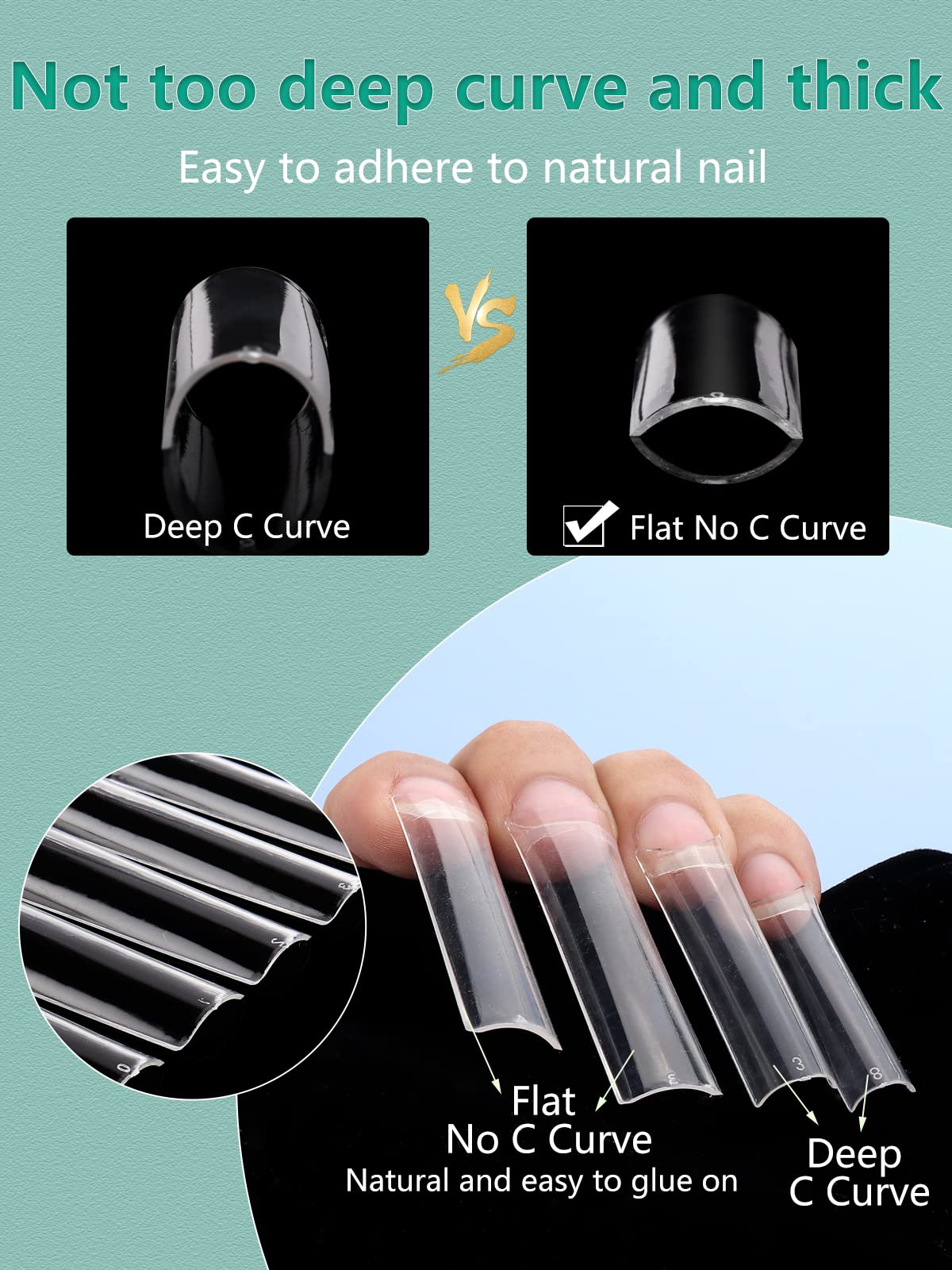 Upgrade xxl Nail Tips No C Curve: We have upgraded this newest flat Non c curve nails based on the feedback about the old basic c curve nail tips. Now it's very natural easy to shape, stick to the nail instantly, saves so much time for shaping and glue on. We had try our best to solve the problem of "the nail tip is too curve and thick, its very hard to glue to natural nail"
