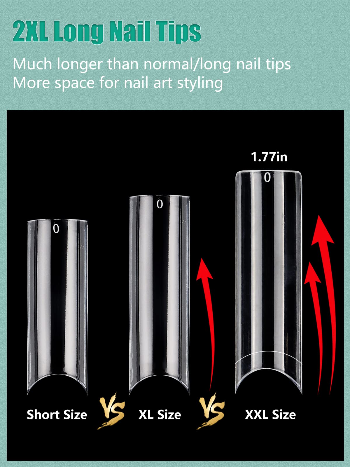 Newest Extra Long Sizes: We improved this long nail tips not only on shape but also on sizes. The longest size is 1.75inch in length for size 0 and shortest lenght 1.43 for size 11. It's much longer than other nail tips on the market. And there are 12 different sizes are pre-numbered 0-11 individually which that you can choose the suitable size conveniently, you also can shape it and cut the length easily according to your needs