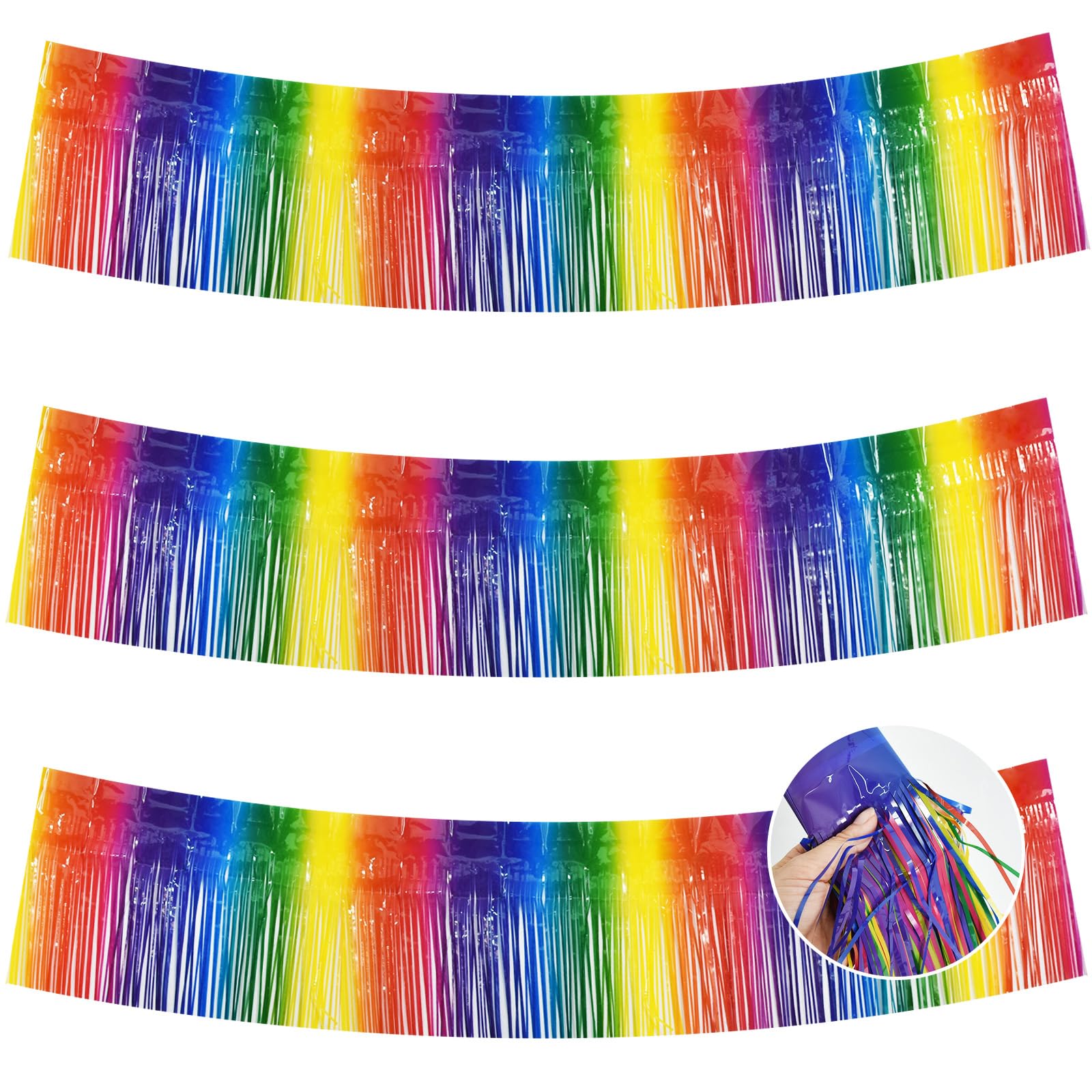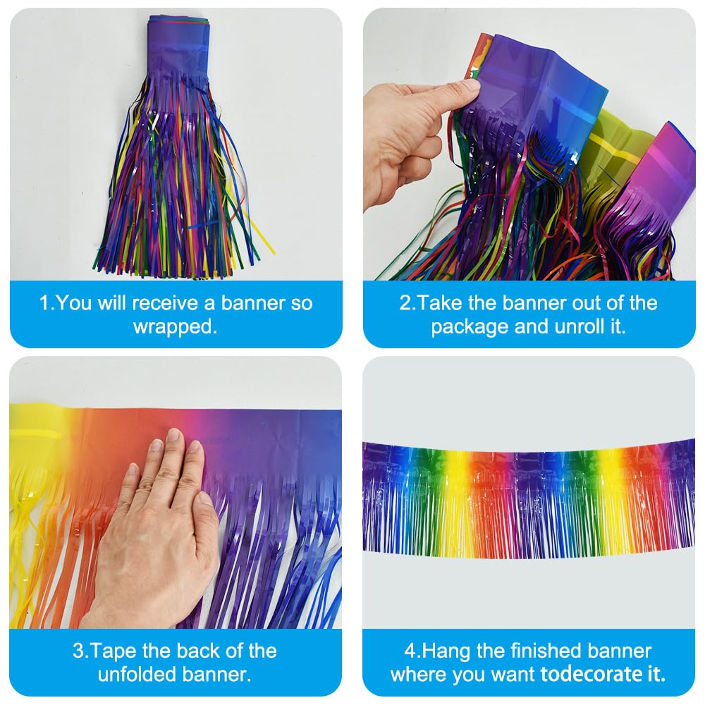 【Package includes】:3 Packs Rainbow shiny fringed tassel banner, each tassel garland is about 10 feet long, enough to decorate your party.
