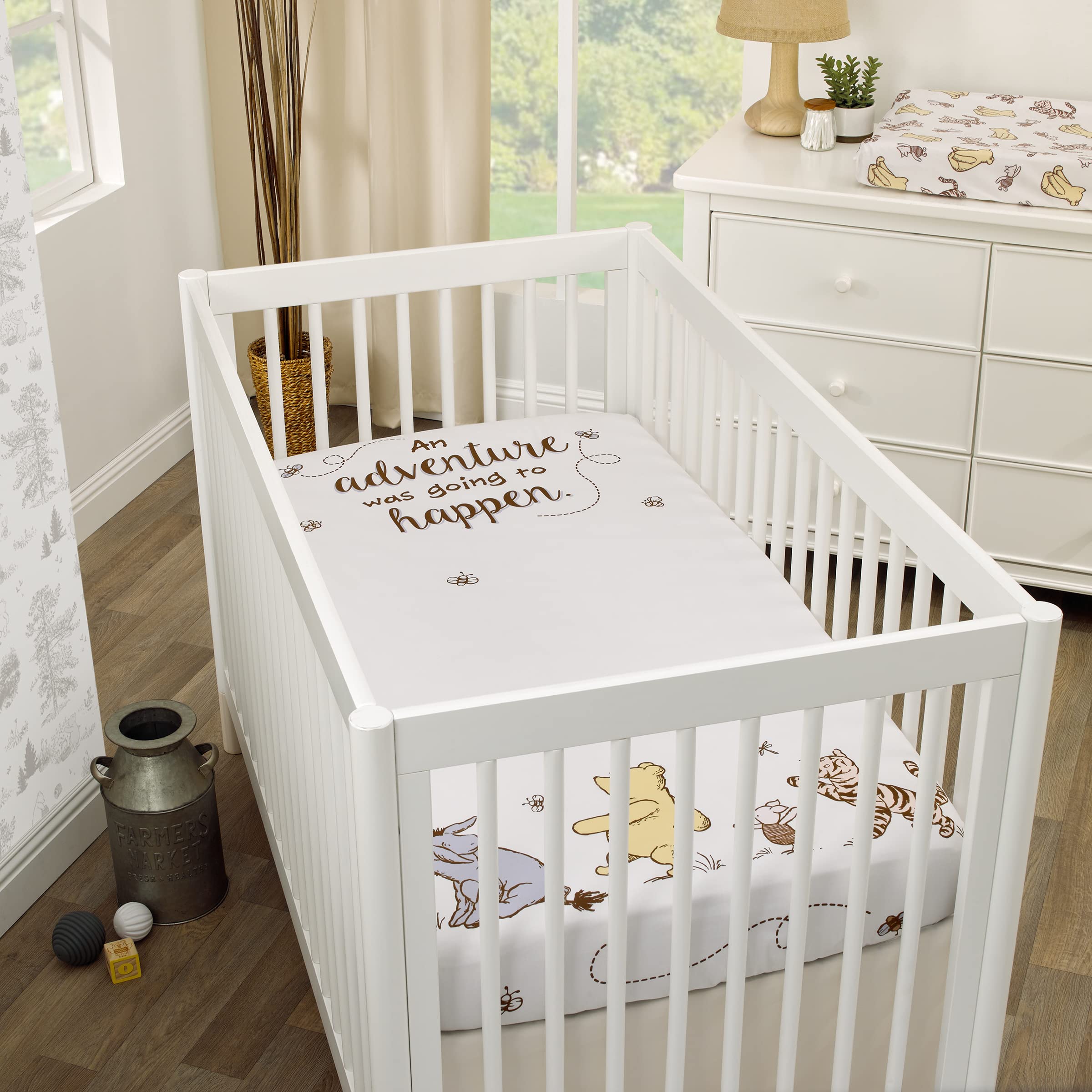 The fitted crib sheet includes elastic edges for a safe and snug fit