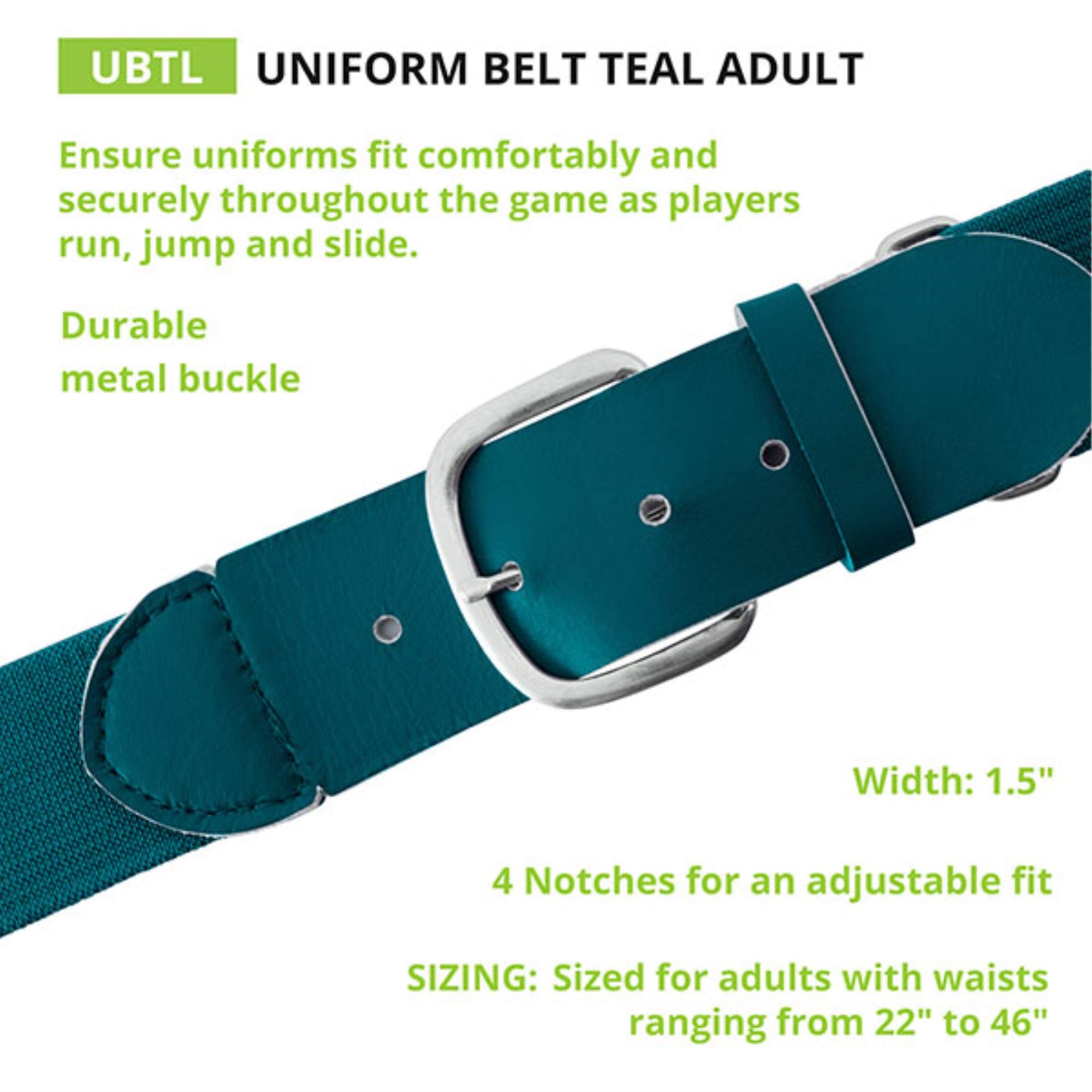 Ensure your uniform stays put with the Champion Sports Uniform Belt. Designed for versatility, this belt features an adjustable elastic band that stretches to fit youth and adult waists. A sturdy metal buckle and leather tab offer lasting durability, while the 1.5" width provides a clean, professional look. Choose from a wide range of colors to perfectly match your team's uniform.