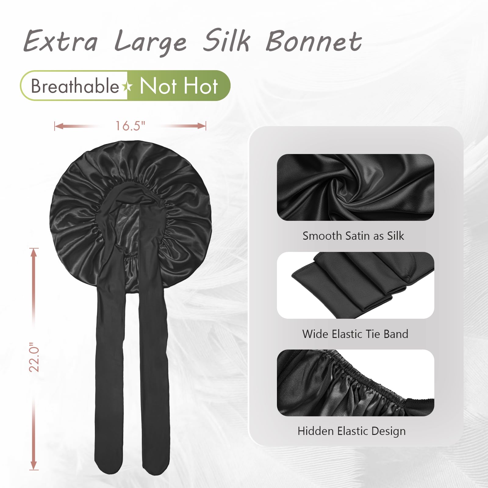Special Design for Big Volume Hair: If you have thick curly hair, long hair, long braids and dreads, this huge satin bonnet is just for you, Bonnet Queen considerly designed this XXL jumbo silk bonnet, to avoid common size of satin bonnet wrap your hair too tight, make sure hair is breatable and cooling, a goodies for summer nighttime