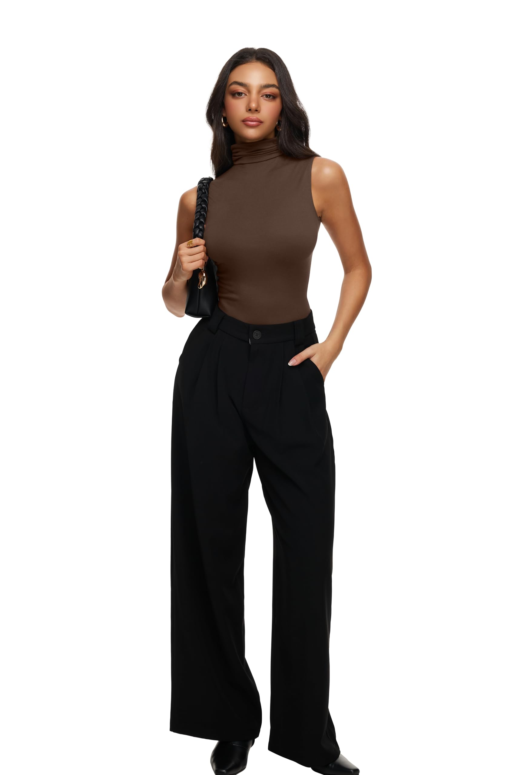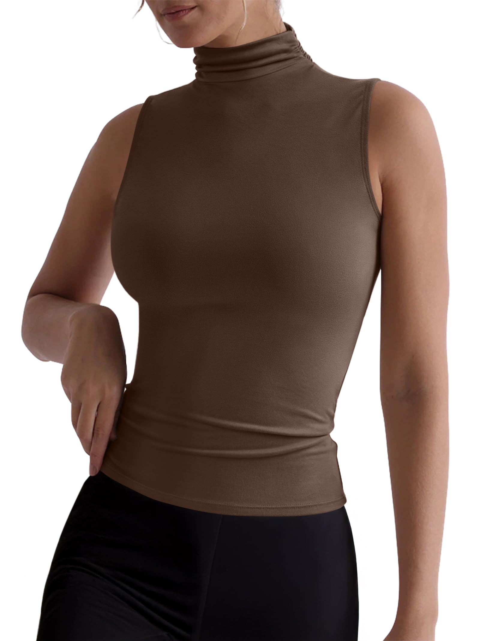 Features - The 2025 fall sleeveless tops for women design with turtle neck sleevess tank tops,High Neck with ruched detailing.Casual and fashion in the Fall trendy outfits