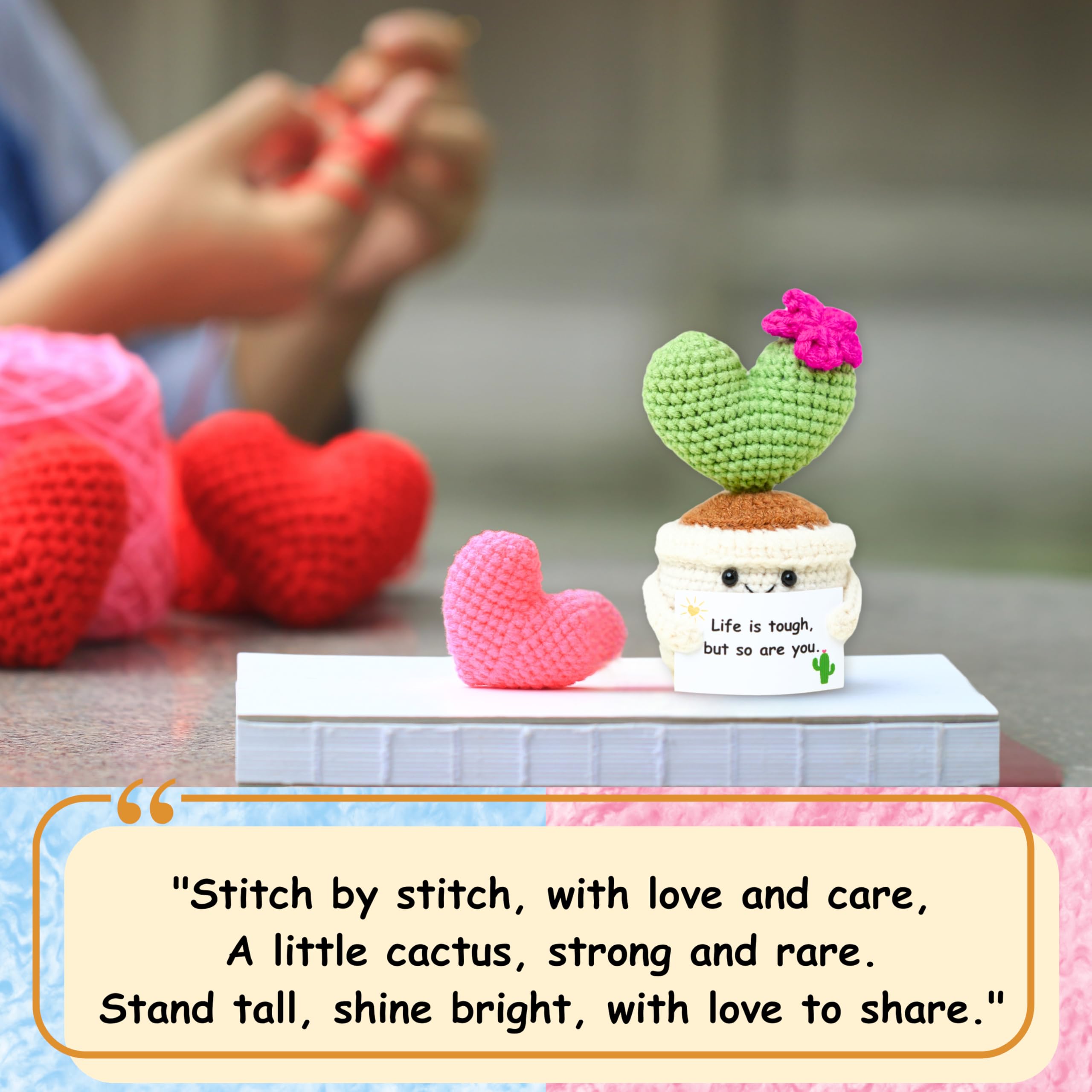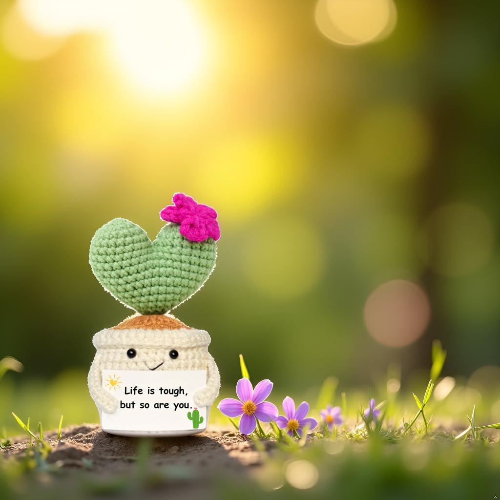 🌵Encouraging Crochet Plant with Inspiring Message: This handcrafted crochet cactus, paired with the "Life is Tough but So Are You" card, is a thoughtful gift to lift spirits during life’s tough moments.