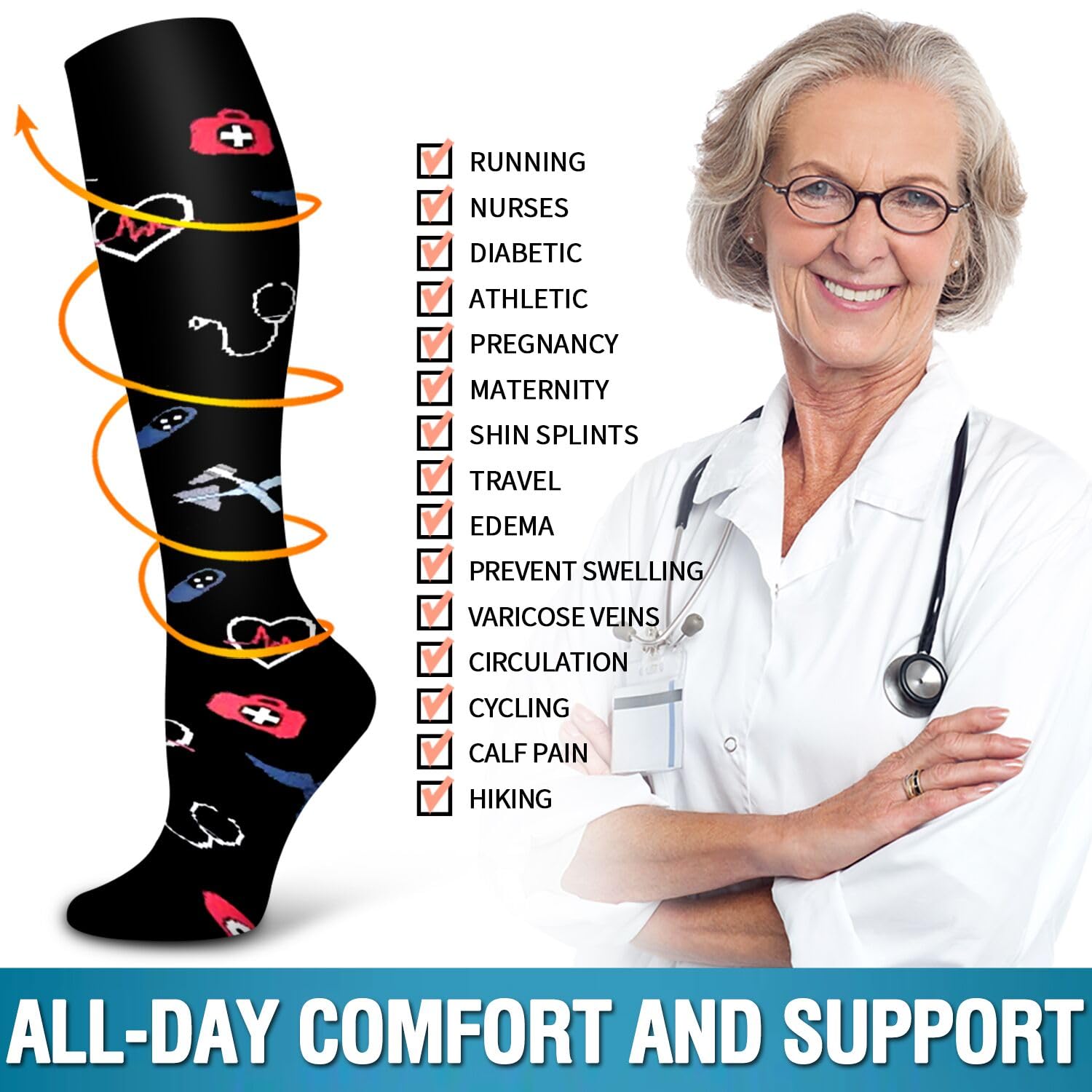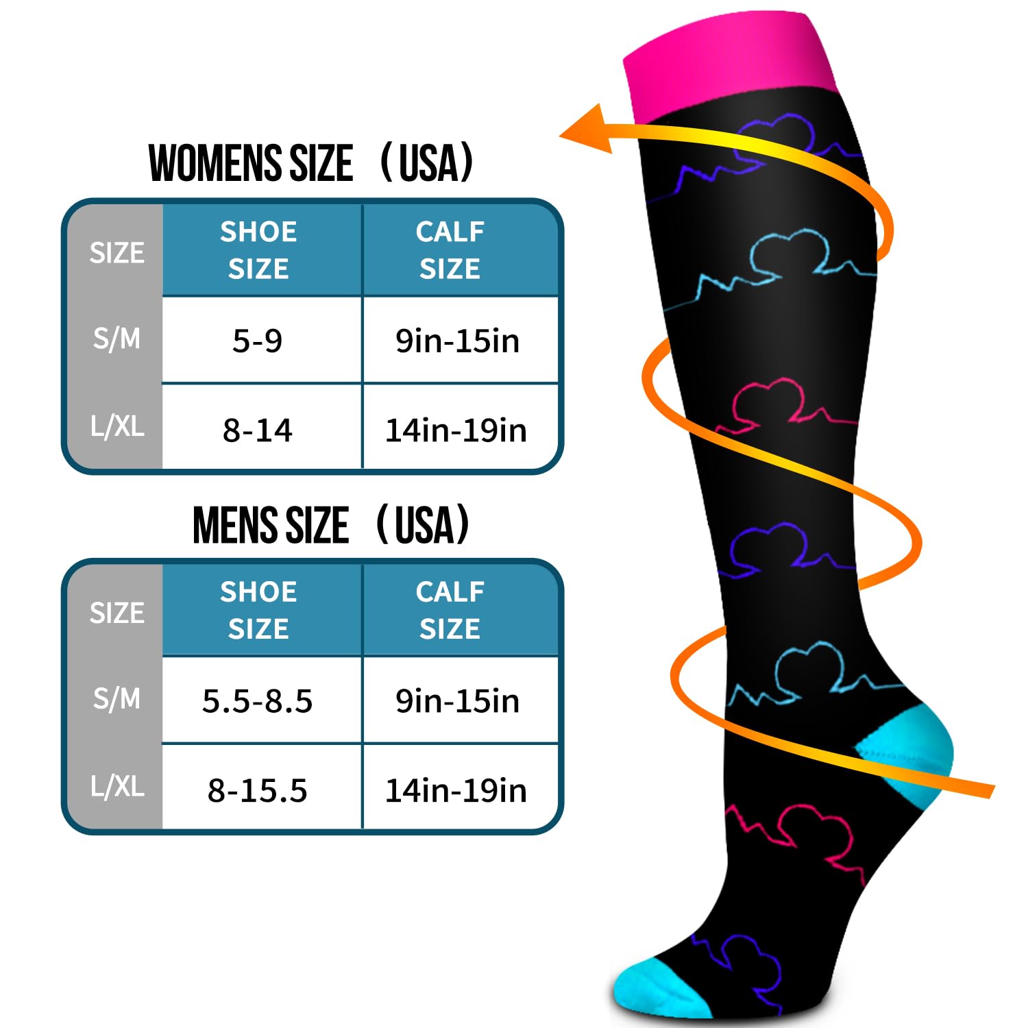 GIFT IDEA & SATISFACTION GUARANTEED- What's more commendable is ...this is a very suitable compression socks for sharing,a variety of styles,suitable for all kinds of people,you can give them as a gift to your friends,families.It has universal applicability,no matter outside or inside,you can benefit enormously from our progressive compression technology.RISK free,if you are not happy with the purchase for any reasons,contact us for an exchange or refund with no questions asked.