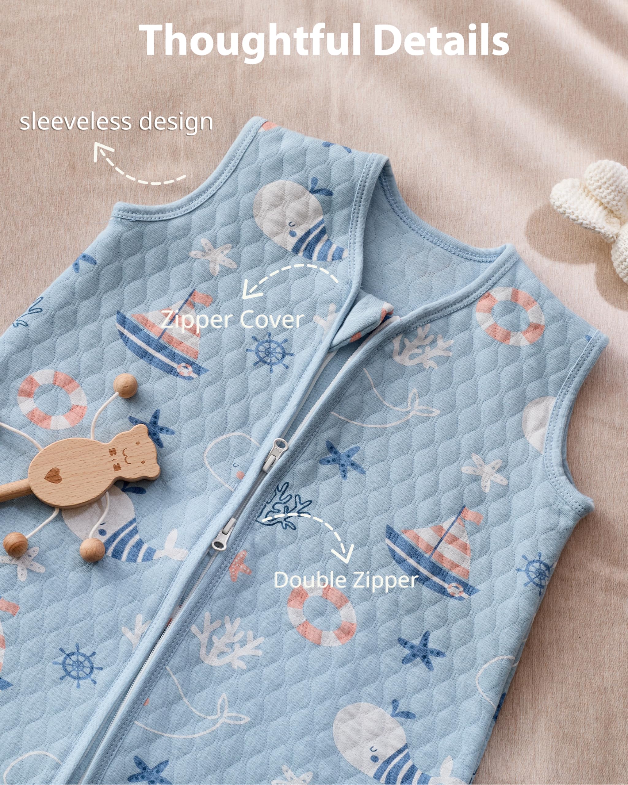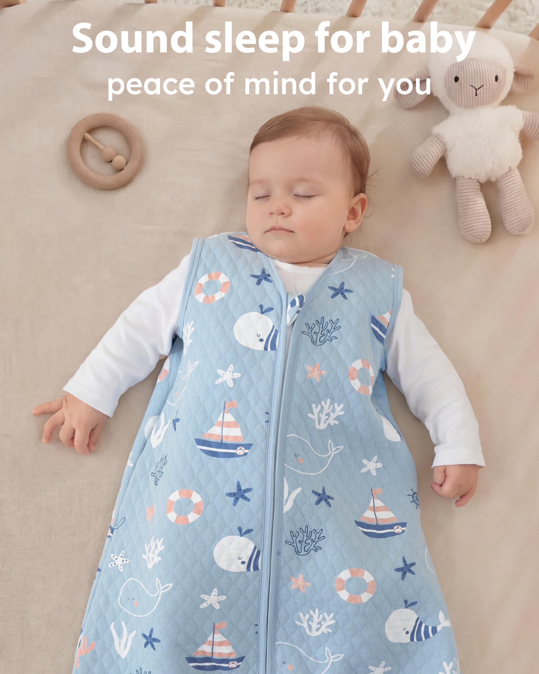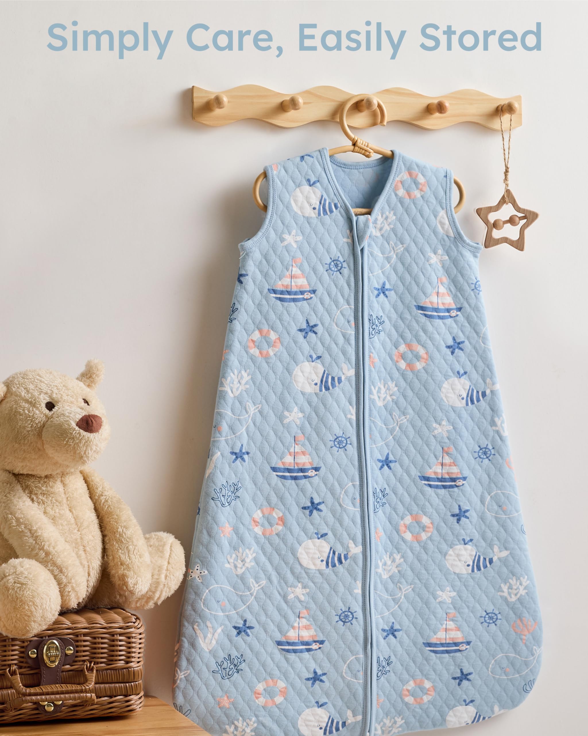 Quilted to Last: The long-lasting quilted design for the baby sleep sack keeps the fill evenly in place after repeated washes. No shifting, no bunching, which means worry-free for you and fewer replacements as your baby grows. It provides just the right warmth and is completely washable without worry.