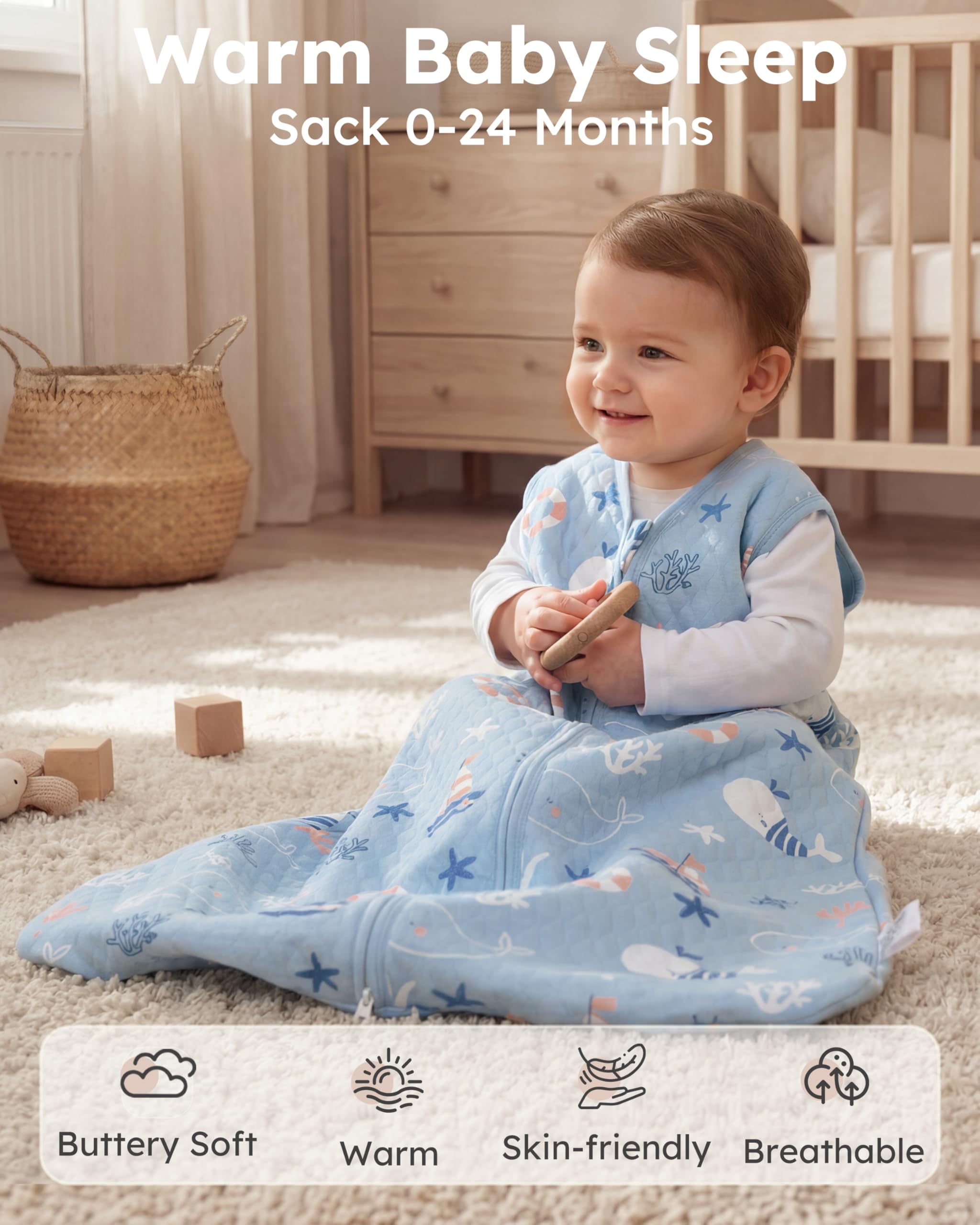 Breathable Fabric: Made from a blend of premium cotton and polyester, this sleep sack promotes airflow to keep your baby comfortable in every season. No more stuffiness or trapped sweat. When your baby sleeps well, you rest easy too.