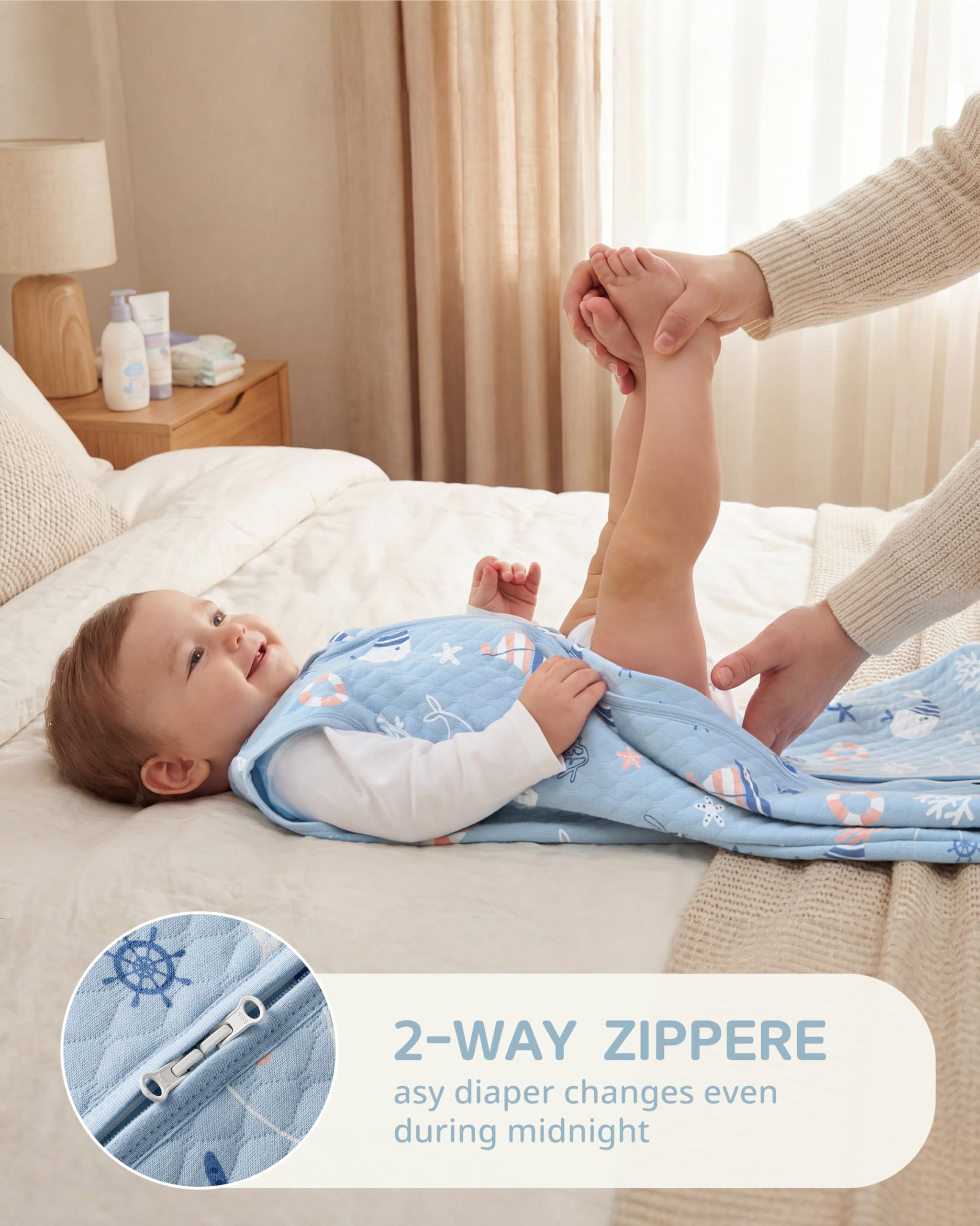 Double Zipper: Unlike traditional blankets or bedding, this Fiemol sleep sack features a convenient two-way zipper for easy diaper changes or outfit adjustments—without fully unwrapping your baby. Designed to make parenting life easier, you do not have to worry about kicked-off covers as the sleeping sack stays in place all night.