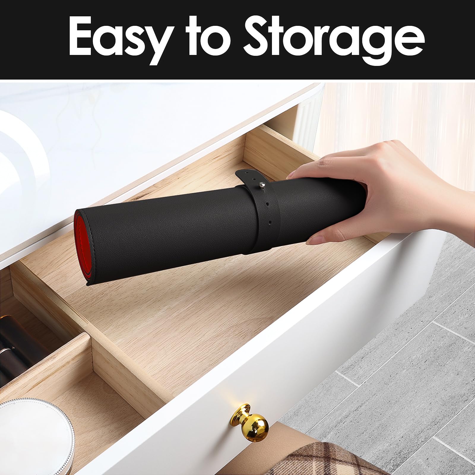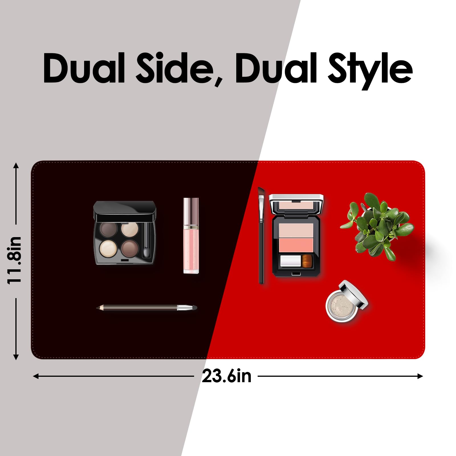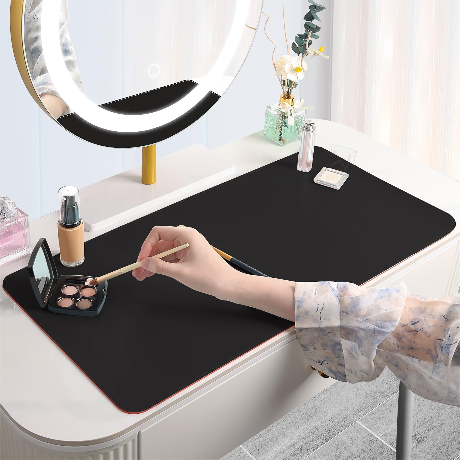 【23.6 x 11.8 in Leather Make Up Mat】TOHONFOO vanity mats are made of durable PU leather material, whitch can protect your vanity table from scratches, stains, spills, heat and wear