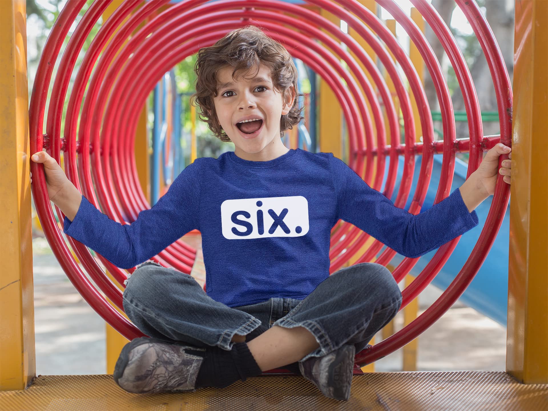 This six year old boy birthday shirt is designed for an age appropriate fit, so there is no need to buy big.