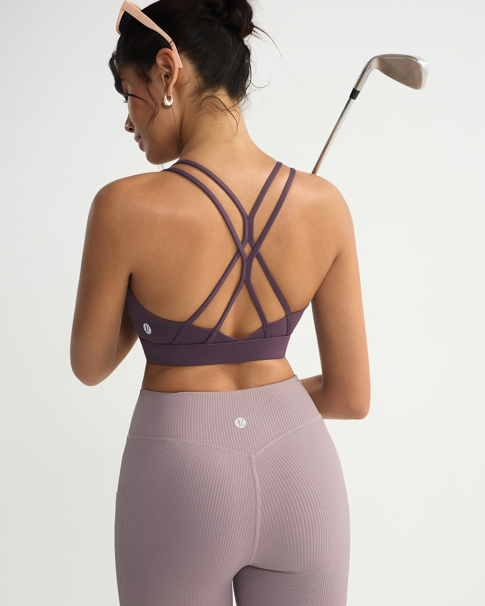 WHY WE MADE THIS: We designed this bra with a strappy, crisscross back for a range of movement. Made with moisture wicking fabric that's sweat-wicking and four-way stretch that offers great support and coverage with a cool, give you smooth COTTONY-SOFT HANGFEEL, great shape retention, long-lasting comfortβif you want it.