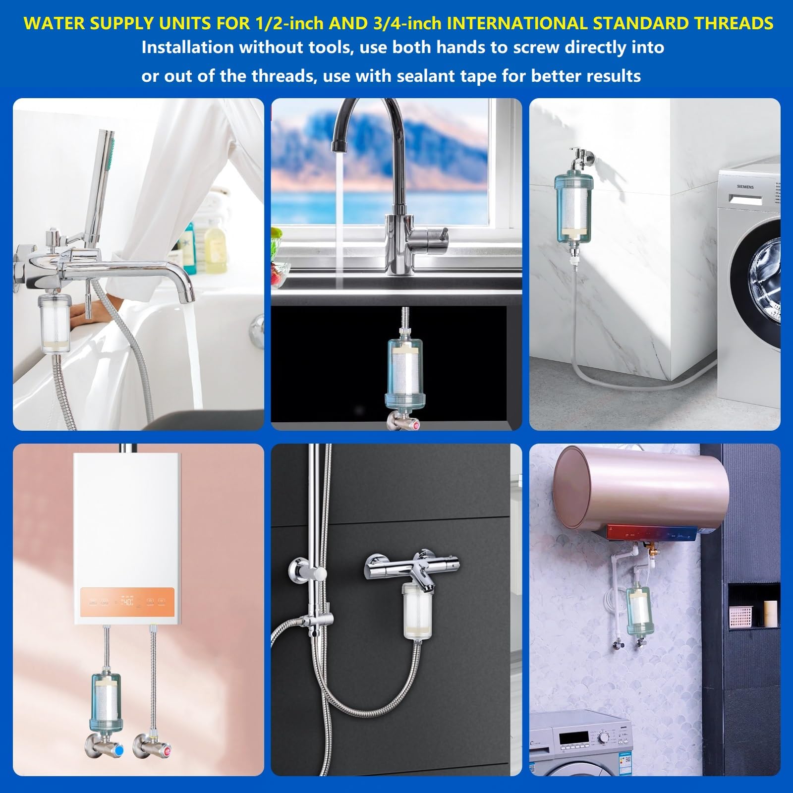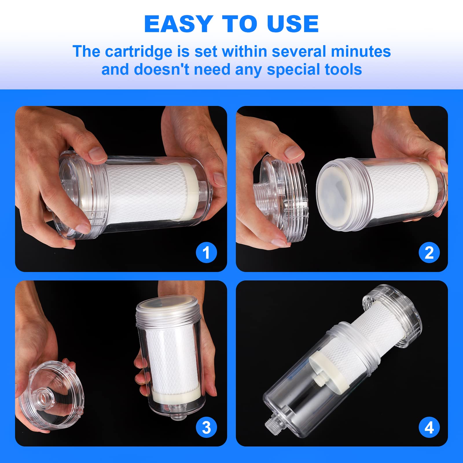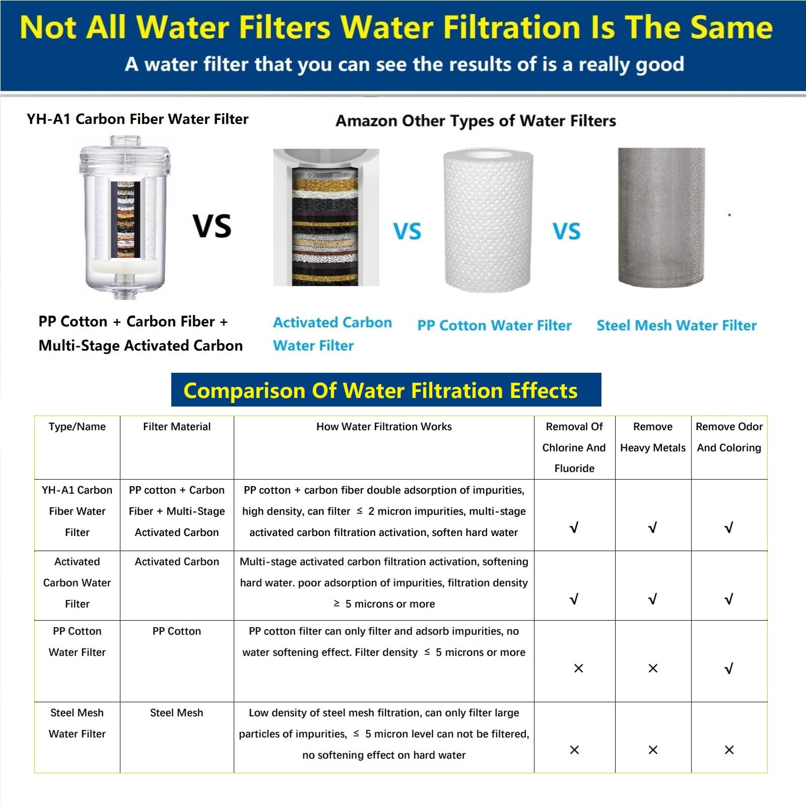 DESIGNED FOR SKIN CONDITIONING:YH-A1 precision cartridge can remove more > 99.5% of chlorine, chloramine, fluorine, rust, lead, cadmium, heavy metals, fine particles, microplastic, sediment, fluff, fiber, odor, pigment and so on. Effectively avoid clogging of water equipment such as washing machine water filter, washer water filter, aquarium water filter, swimming pools filter, etc. Can truly moisturize itchy, red, eczema-prone skin. Improves damaged scalp and hair, reduces dandruff, BPA free