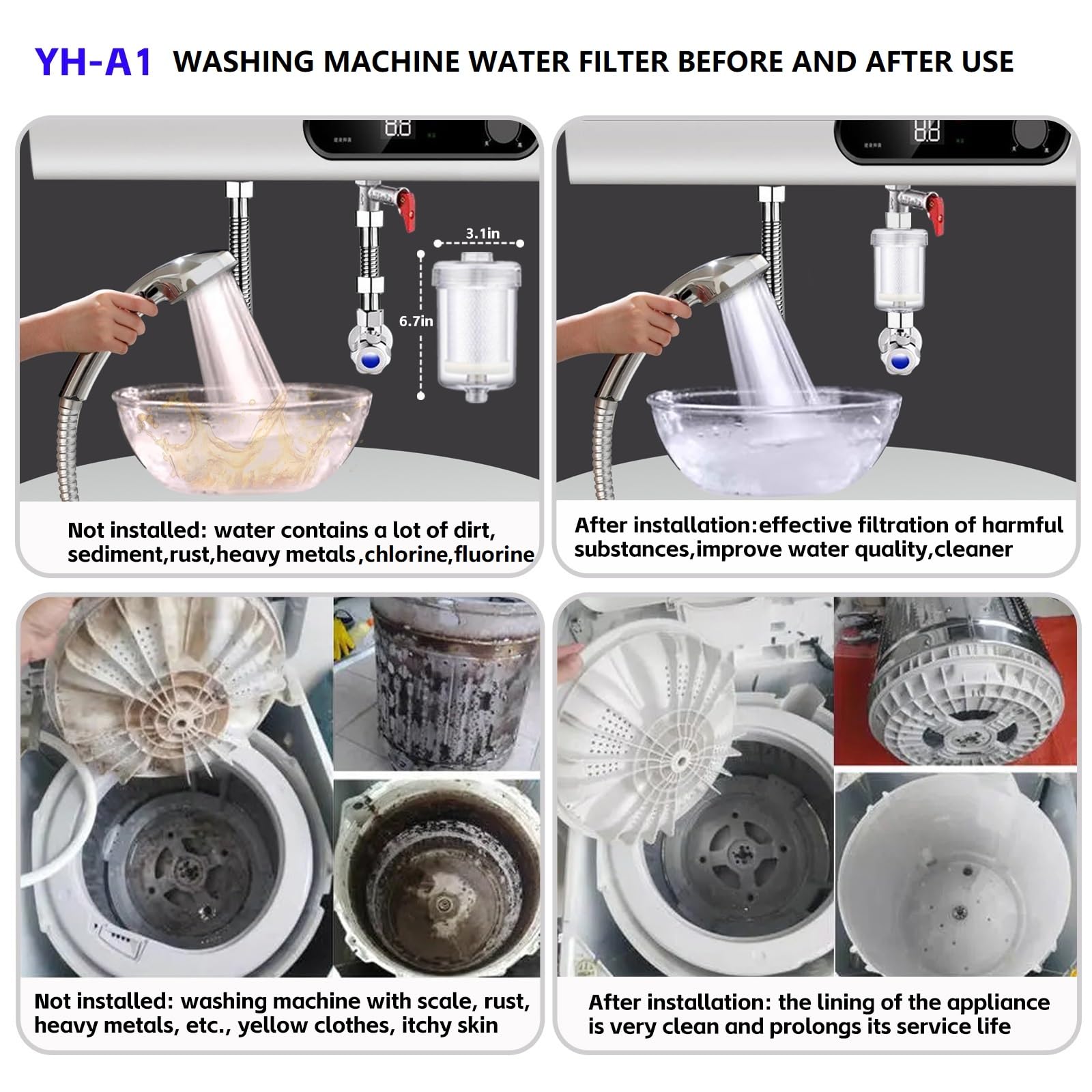 ZHYUUAX 1 Micron Washing Machine Water Filter, Washer Water Filter System, For Washing Machine, Shower, RV, > 99.5% Removal of Chlorine Fluoride, Heavy Metals, Odor, Reusable Carbon Shower Filter