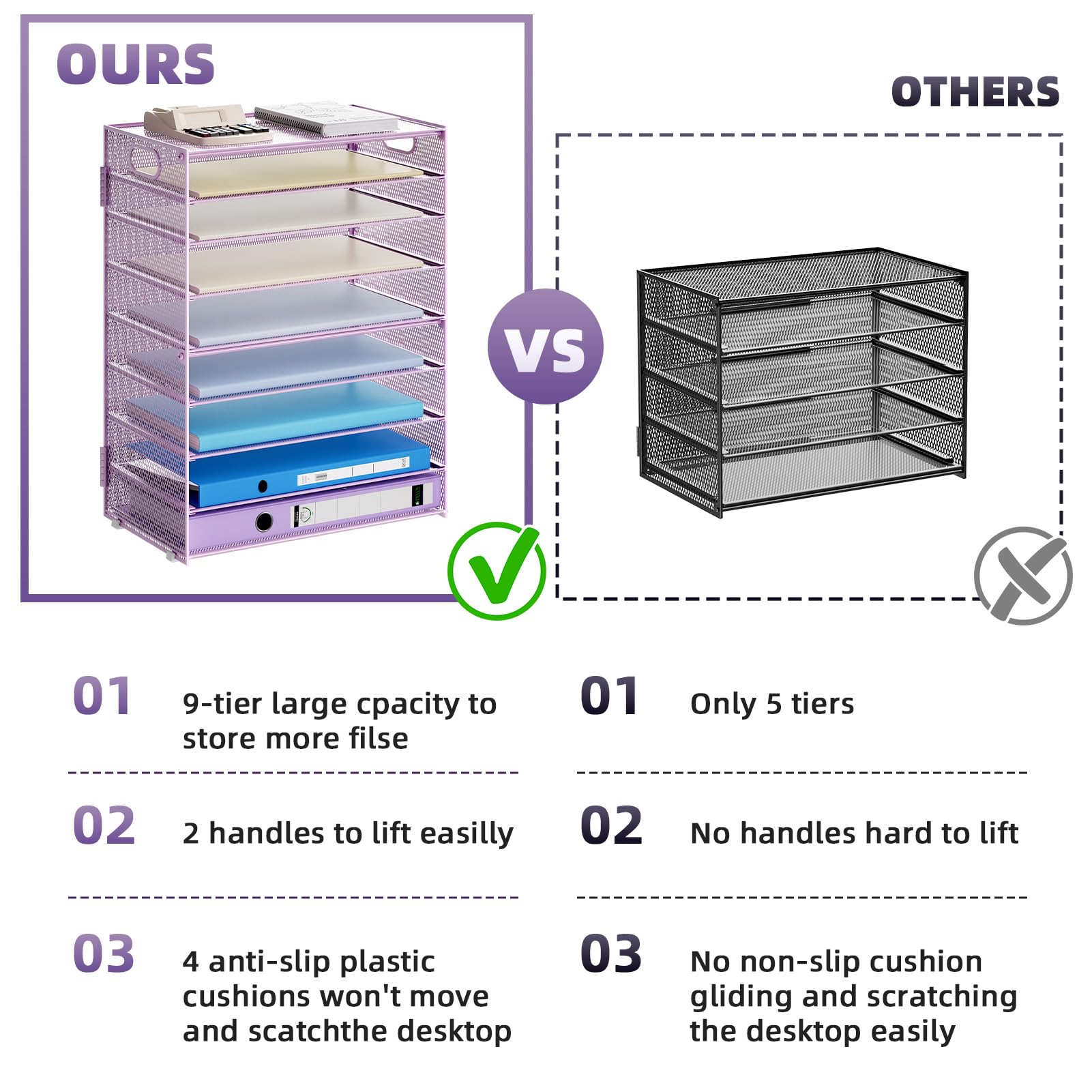【MULTI-PURPOSE ORGANIZER】5-tier layered design and large capacity make the paper organizer become an ideal choice for managing all kinds of letter-size letters, paper, books, bills, etc. Let you quickly identify the contents of each compartment super easy!