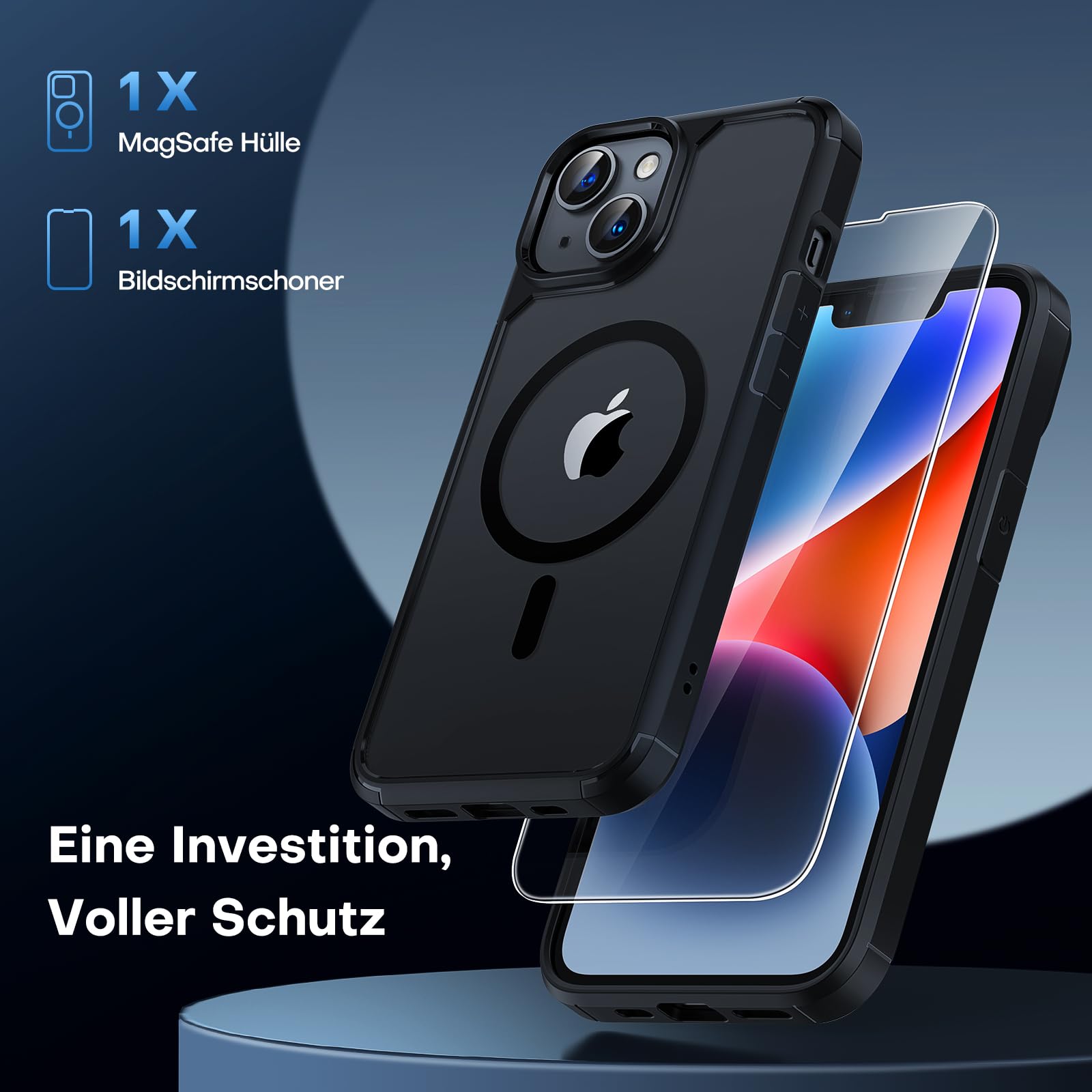 【2-in-1 360° Full Protection】TAURI for iPhone 13/for iPhone 14 Case with screen protectors, which can provide a 360° all-around protection for your phone. The Phone case for iPhone 13/14 adopts a multi-layer buffer structure to effectively absorb impact and protect the phone, screen
