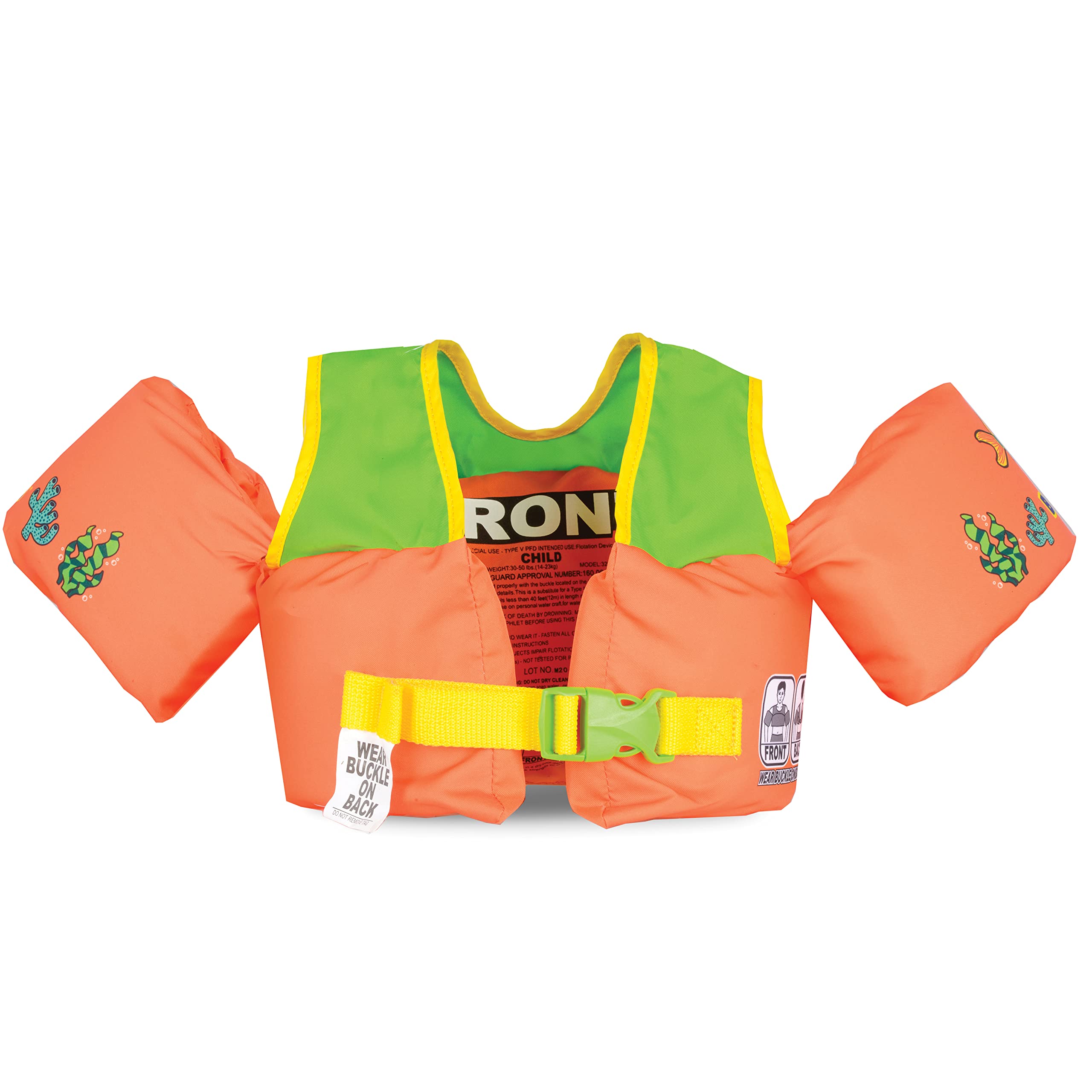 Approved Safety First: Swim vest life jacket with attached arm bands approved by the USCG (United States Coast Guard) as a Type III Personal Flotation Device (PFD) and TC (Transport Canada), ensuring your child's safety while enjoying water activities at the pool, beach, or lake