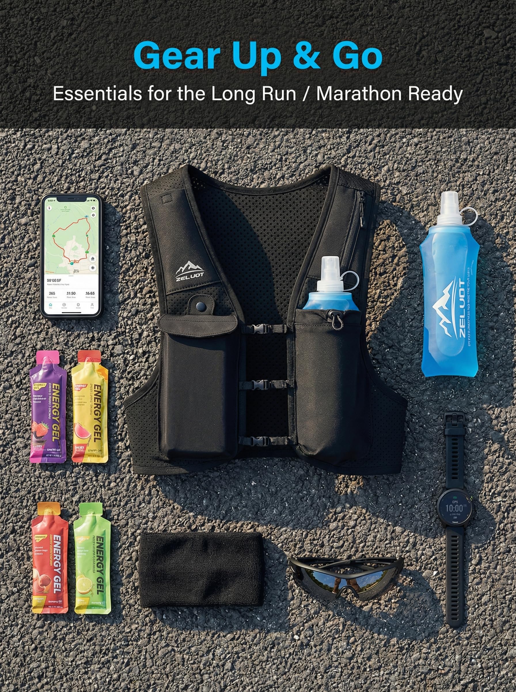 Breathable and Featherlight - Zelvot hydration vest is made from breathable, lightweight neoprene with triple-sized ventilation holes for accelerated air circulation and moisture-wicking. It barely tips the scales at 7.5 ounces, ensuring it won't slow you down. Reflective logo and strip on the front and back increase safety in low-visibility scenarios. This reflective running vest makes every run farther, safer, and more comfortable.