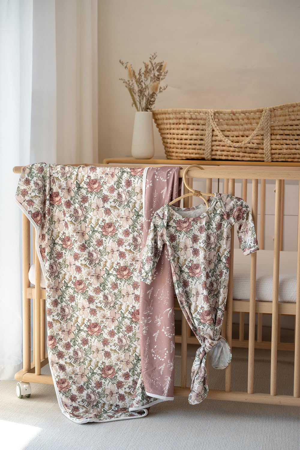 Timeless Vintage Floral Design: Our Boho baby blanket features a charming vintage floral and boho leaves print that adds a touch of classic elegance to your little one's nursery.