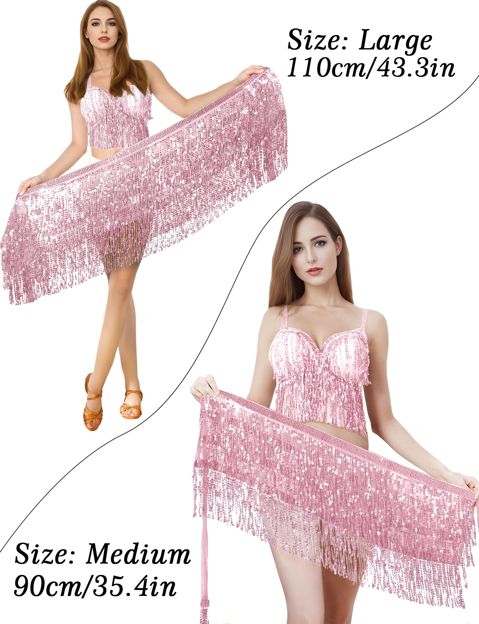 【UPGRADED DESIGN】 Our belly dance hip scarf is free sized for women and girls. To solve the problem of insufficient coverage, we especially lengthened the decorative part of the wrap sparkly tinsel fringe skirt and made two sizes, 90cm/35.4in and 110cm/43.3in, so you can choose the right size according to your waistline. Equipped with a long enough adjustable chiffon belt, easy to adjust the elasticity according to the waist circumference, easy to put on and take off!
