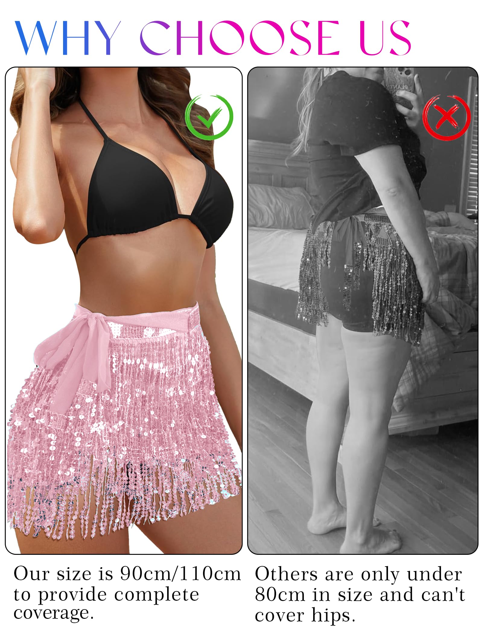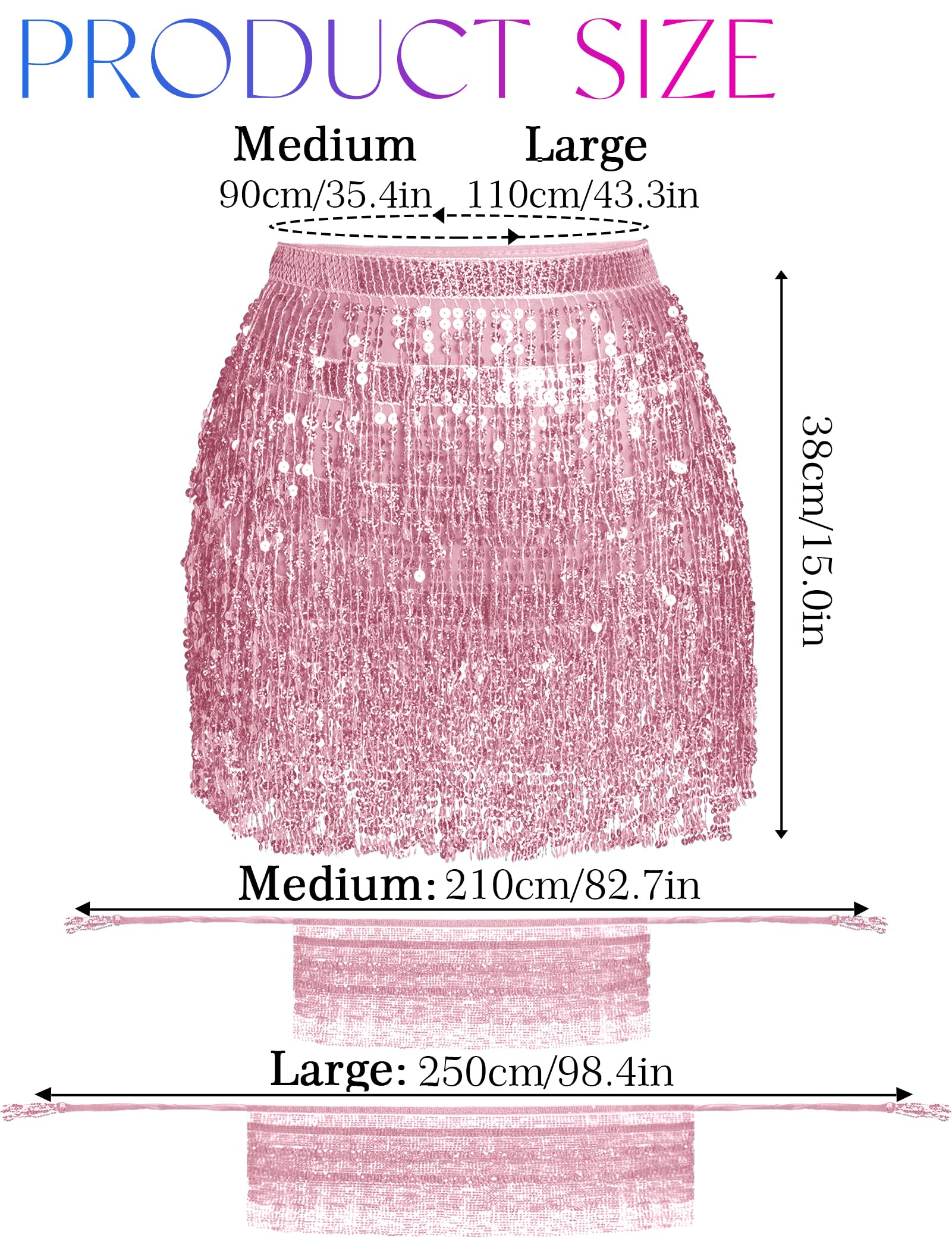【FREE TO MATCH】 The glitter skirt can be worn with a variety of outfits to accent and decorate. You can wear shorts or leggings under the sparkly skirt for complete coverage, or wear the fringe skirt over a long or short skirt for a layered and varied look, or wear the belly dance hip scarf as is to show off your elegant figure. Our tassel skirt can meet your need to match freely in different scenes. In short, show your beauty with creativity.