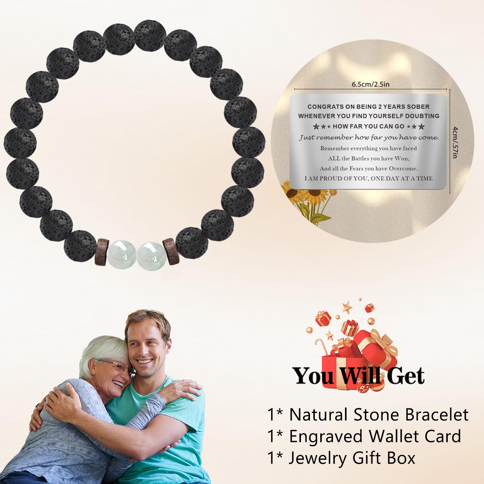 【Unique Gifts for Men Women】This handmade beaded bracelets combined with Strength Volcanic Rock and Love Moonstone. come with 2 year sobriety card and nice gift box that can be given as a gift directly. make a great stocking stuffers for men, women, teens, Unique Christmas gifts for celebrate two year of sobriety, Wearing this healing bracelets is excellent to help Purify Stress or Anxiety, Bring men Love, Powerful Strength and Protection, Guides make Right Decisions, attract Good Fortune