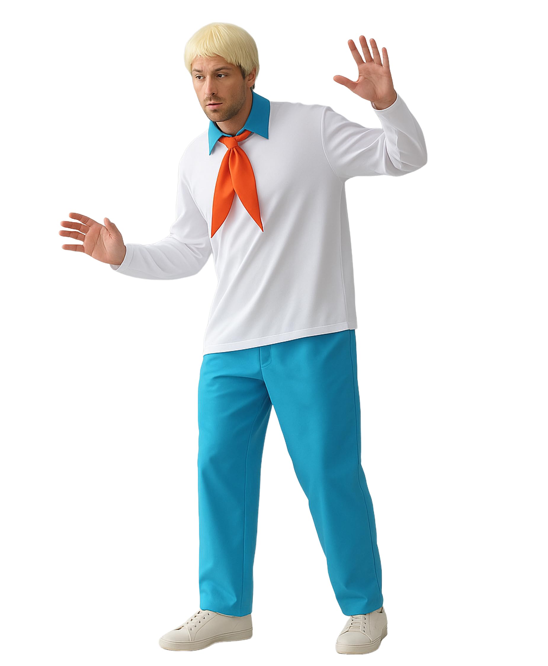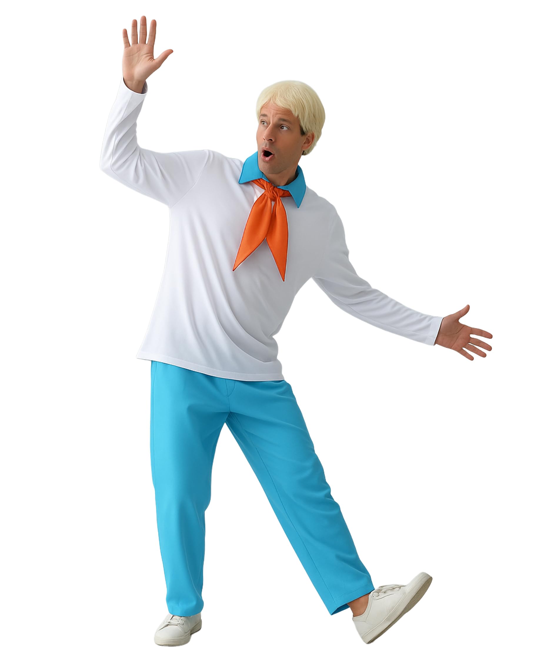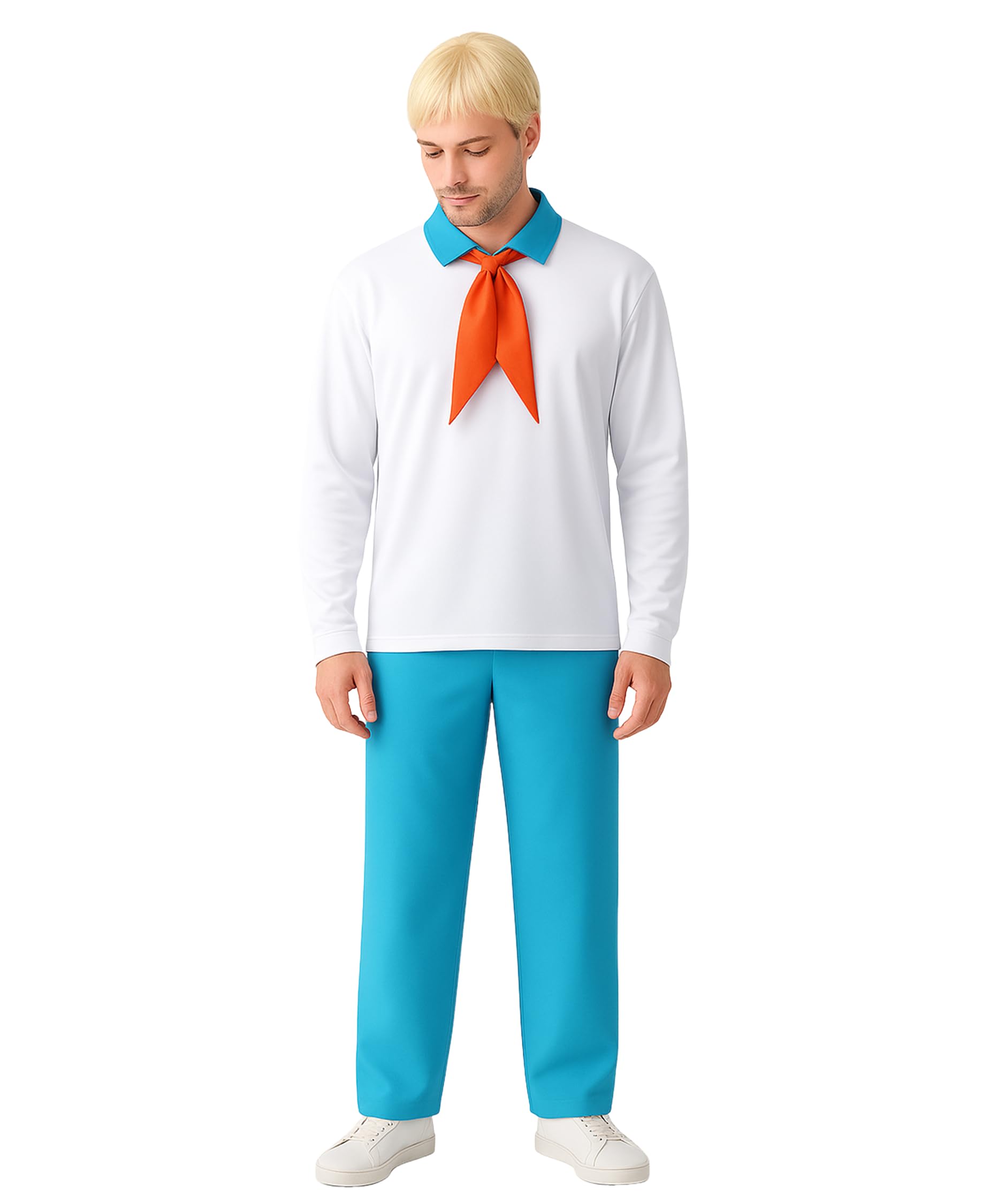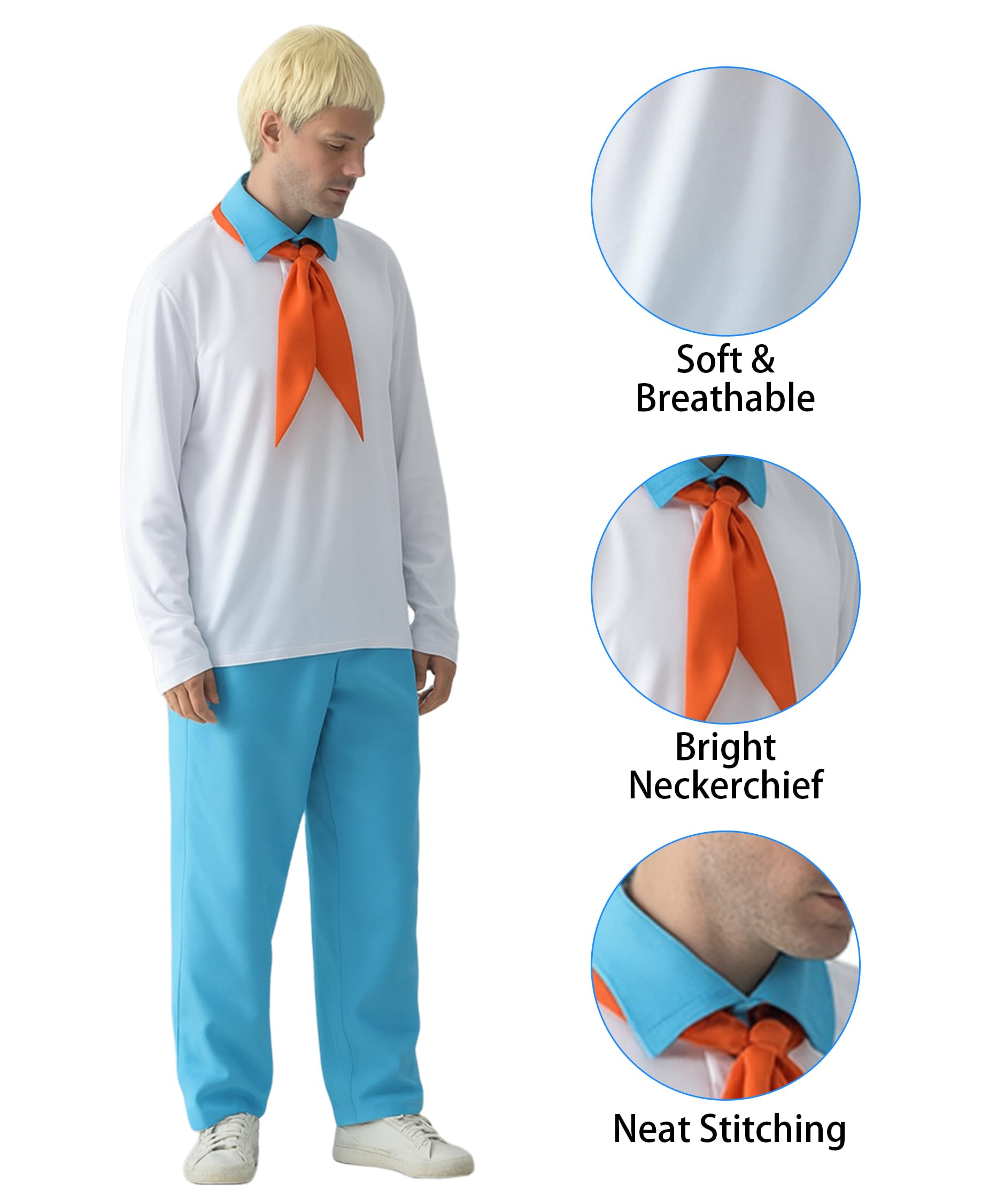 Complete Costume Bundle: Includes a white button-down shirt, white pants, blonde wig, and neckerchief — everything you need for instant transformation into a classic Halloween look!