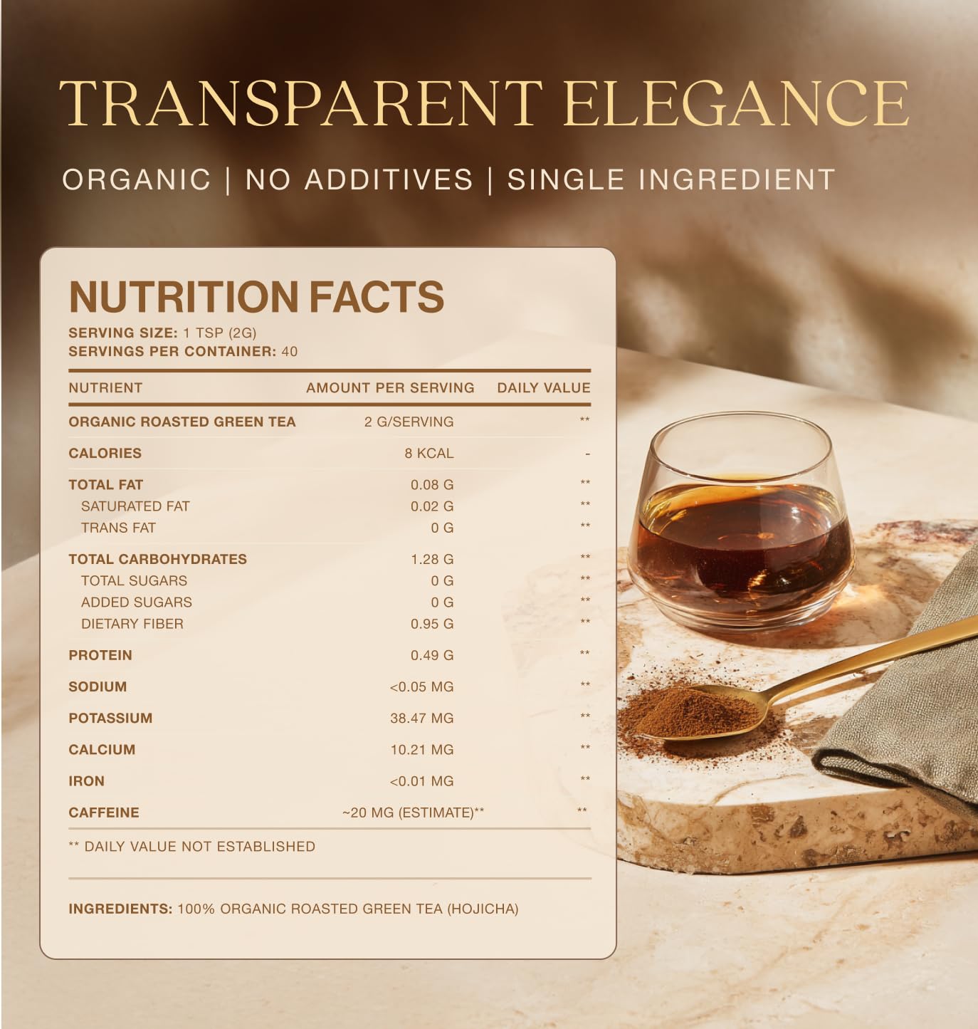100% ORGANIC FROM JAPAN – Expertly sourced from premium Japanese green tea, roasted and finely milled to deliver a rich, authentic hojicha experience.