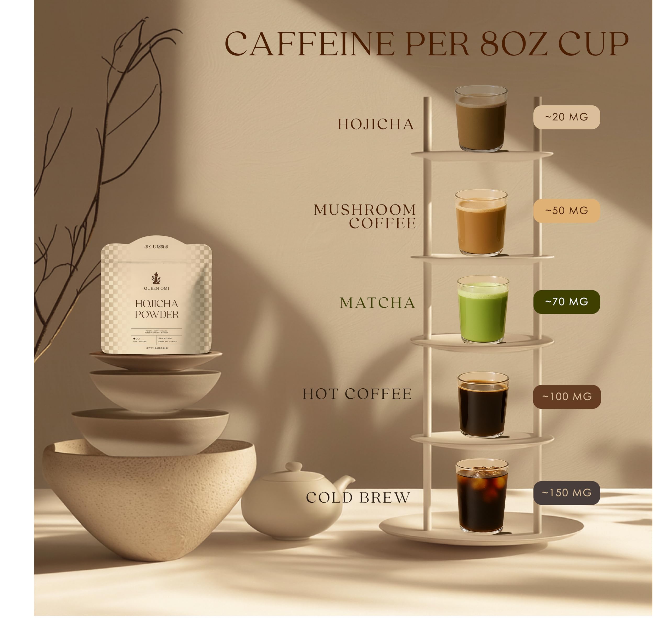 LOW CAFFEINE – The traditional roasting process significantly reduces caffeine, making Queen Omi a soothing alternative to both matcha and coffee—perfect for morning focus or evening wind-down.
