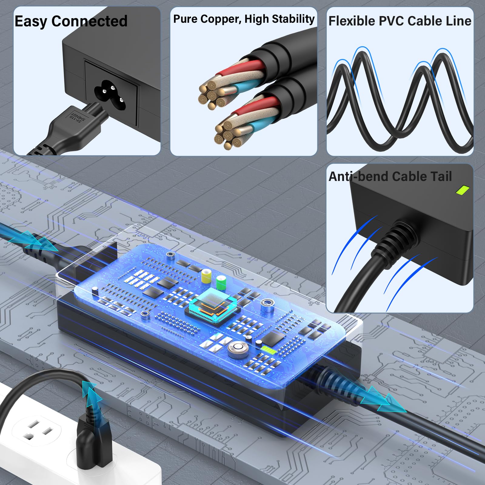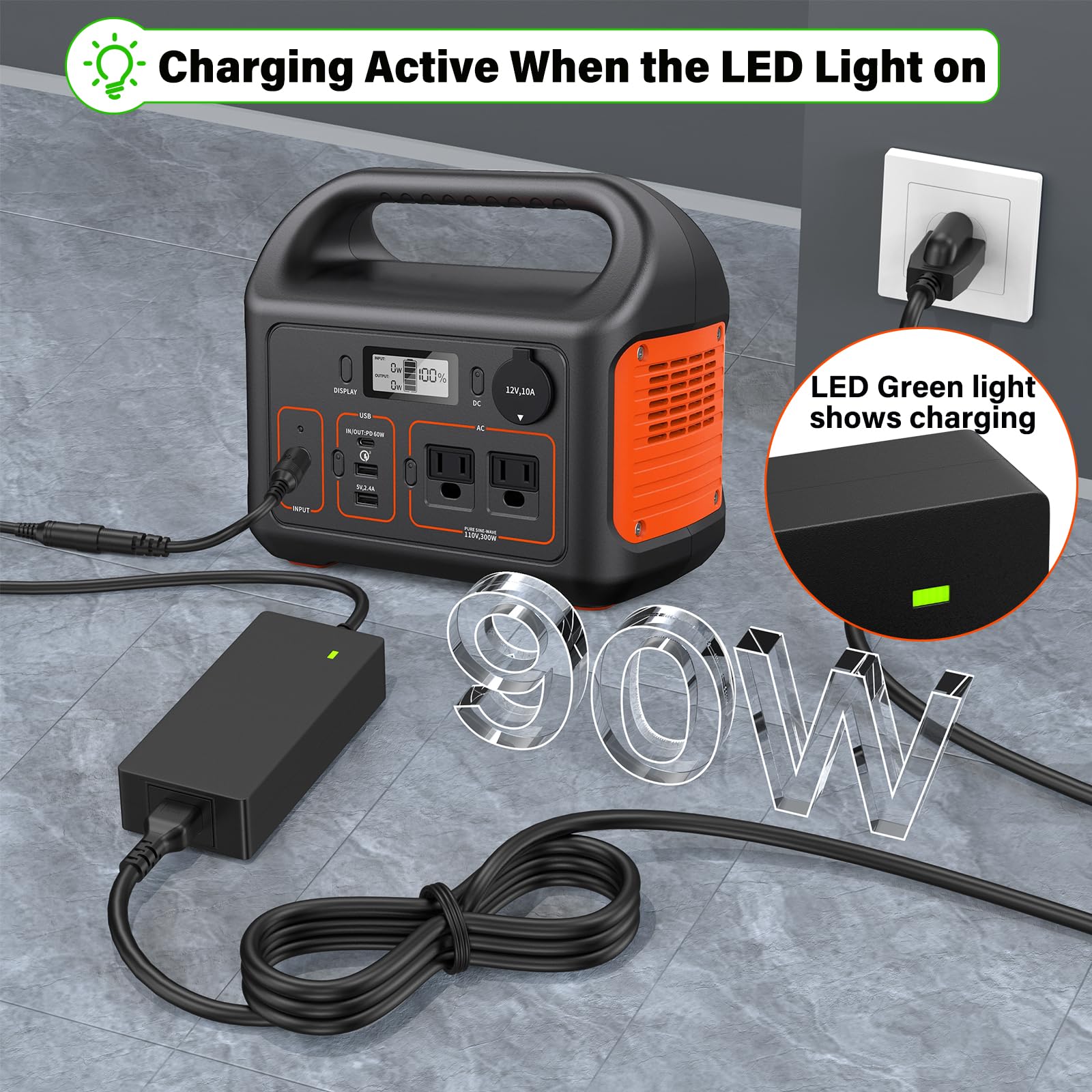 Two Upgrades: Comes with a durable 3-prongs US standard plug jack with ground wire, the 24VDC power adapter for Jackery Explorer 160 240 replacement accessories parts is more safer when working. The 24v portable power station charger cable is also supporting with a LED light, making it convenient for you to check whether it's working and find its location easily in the dark when light on