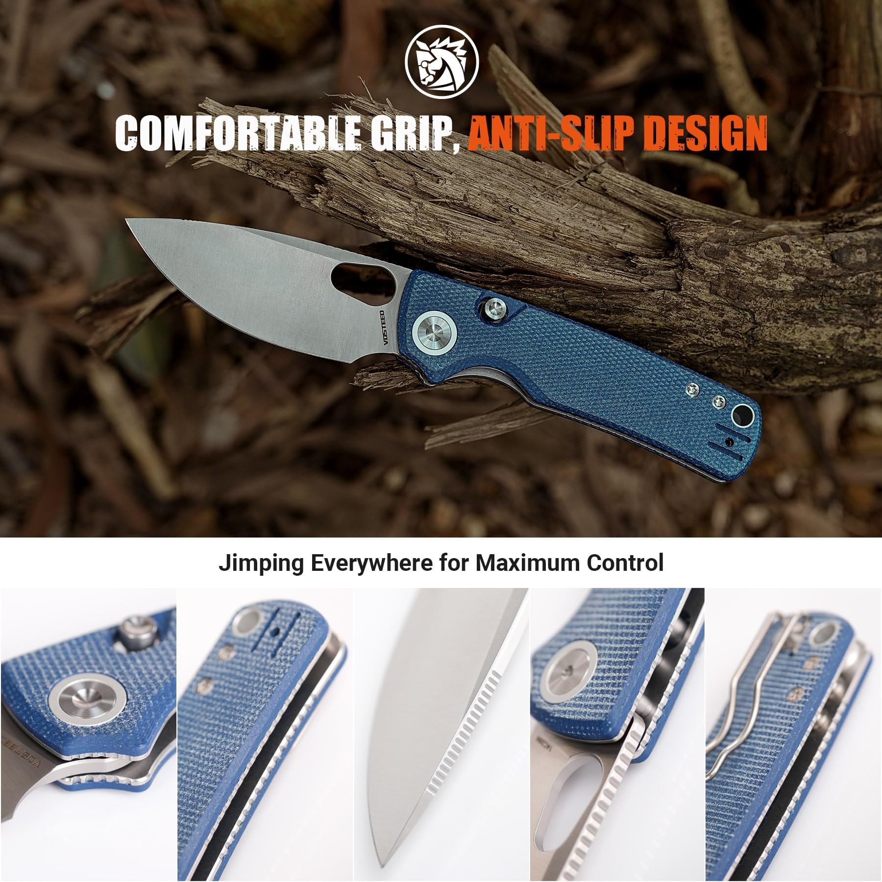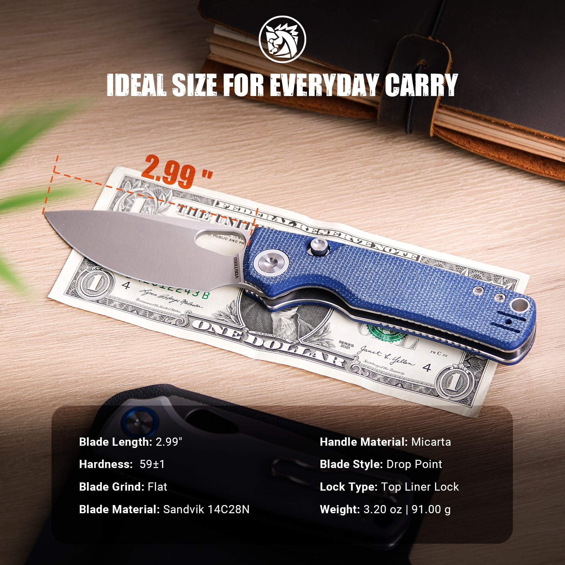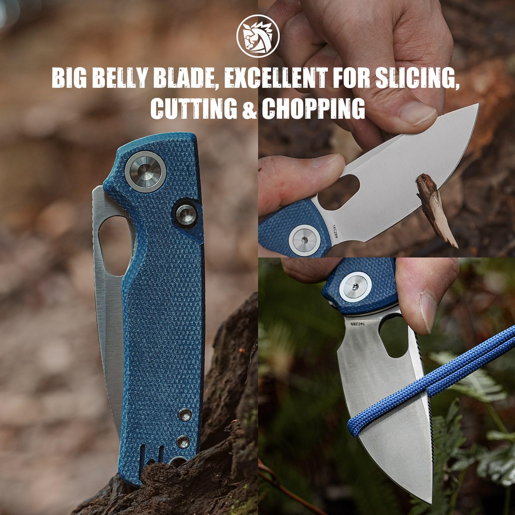 ❆Pointy Tip and Big Belly Blade❆ The generous blade belly makes slicing tasks-such as cutting meat, fruits, and vegetables—an absolute breeze. The pointy tip delivers precision for tasks like opening packages, cutting ropes, and slicing through cardboard. The 2.99" 14C28N blade offers excellent edge retention, corrosion resistance, and ease of sharpening.