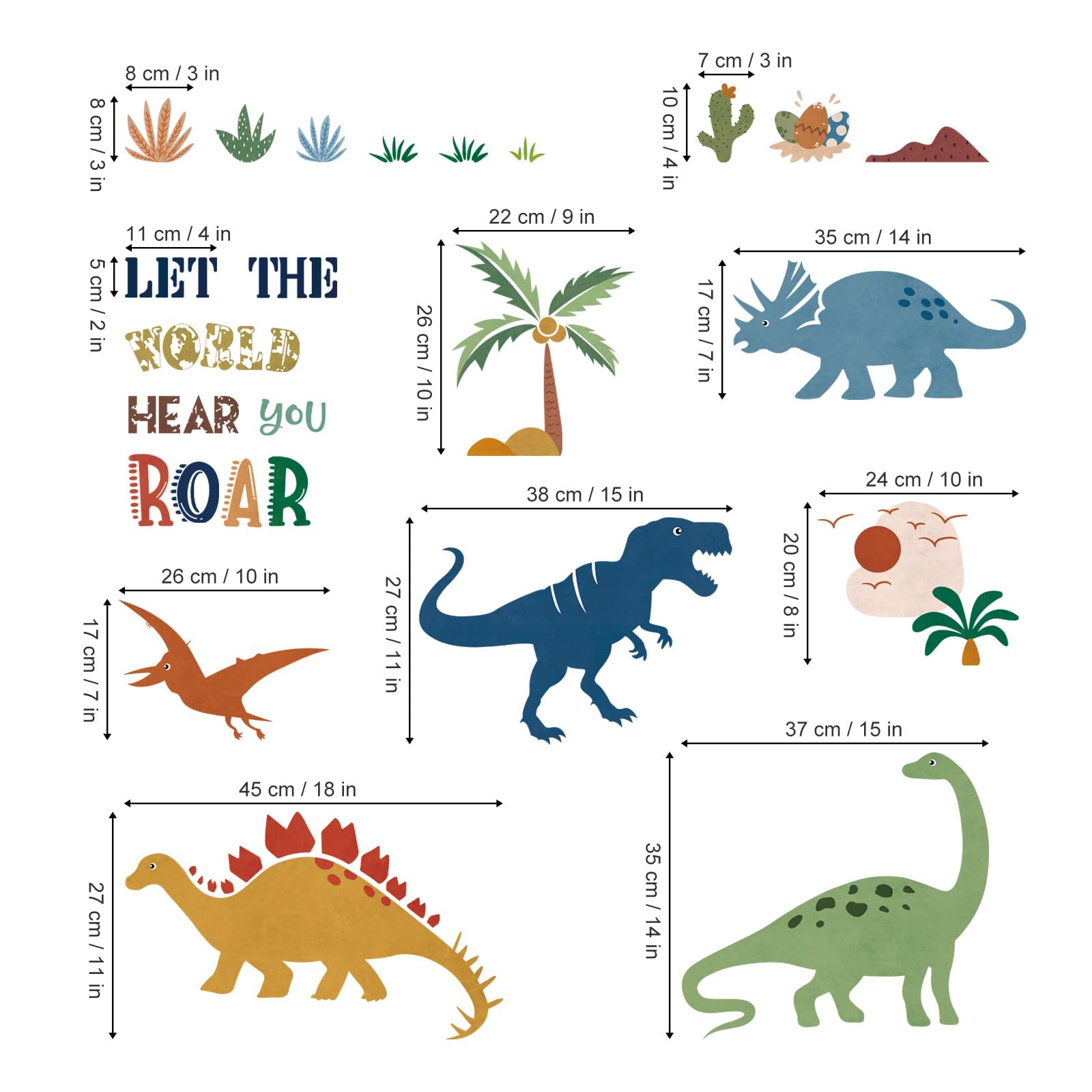 decalmile boho dinosaur wall stickers are perfect to decorate kids room, bedroom, daycare, baby nursery and playroom.